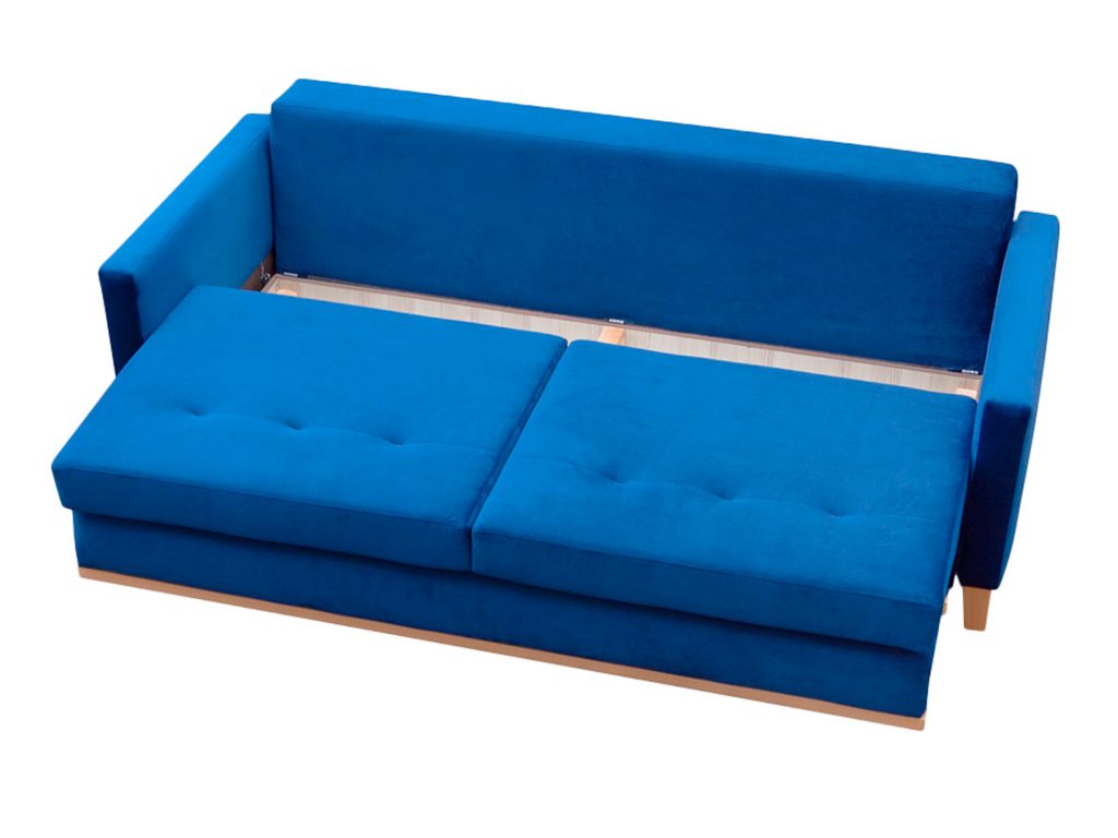 Granatowa kanapa do salonu na drewnianych nóżkach aranżacja ROSARIO
