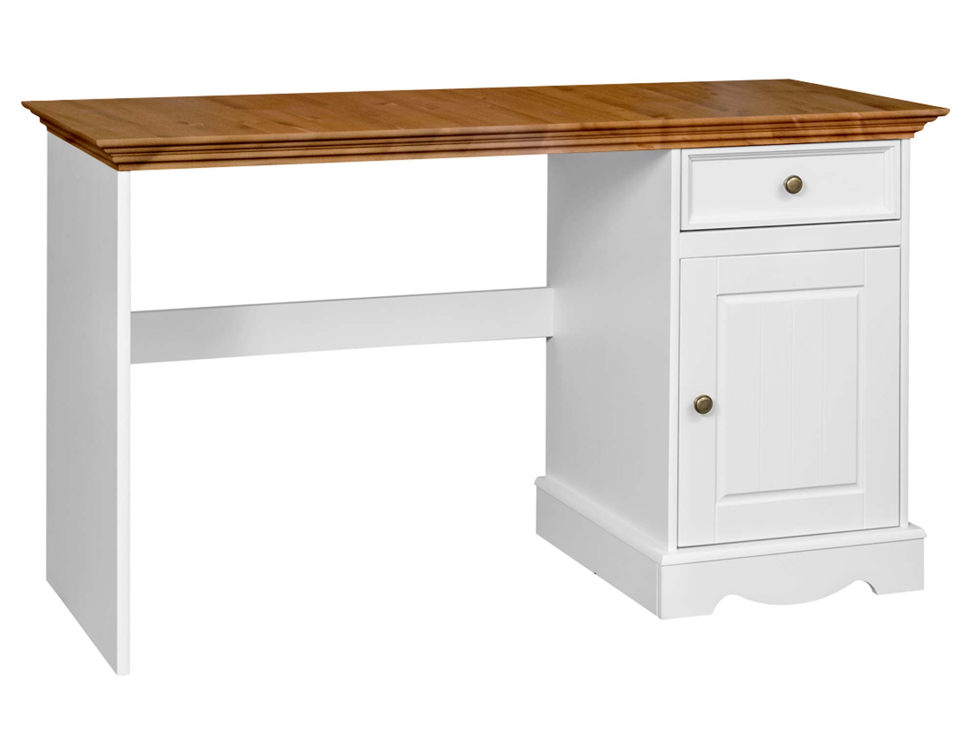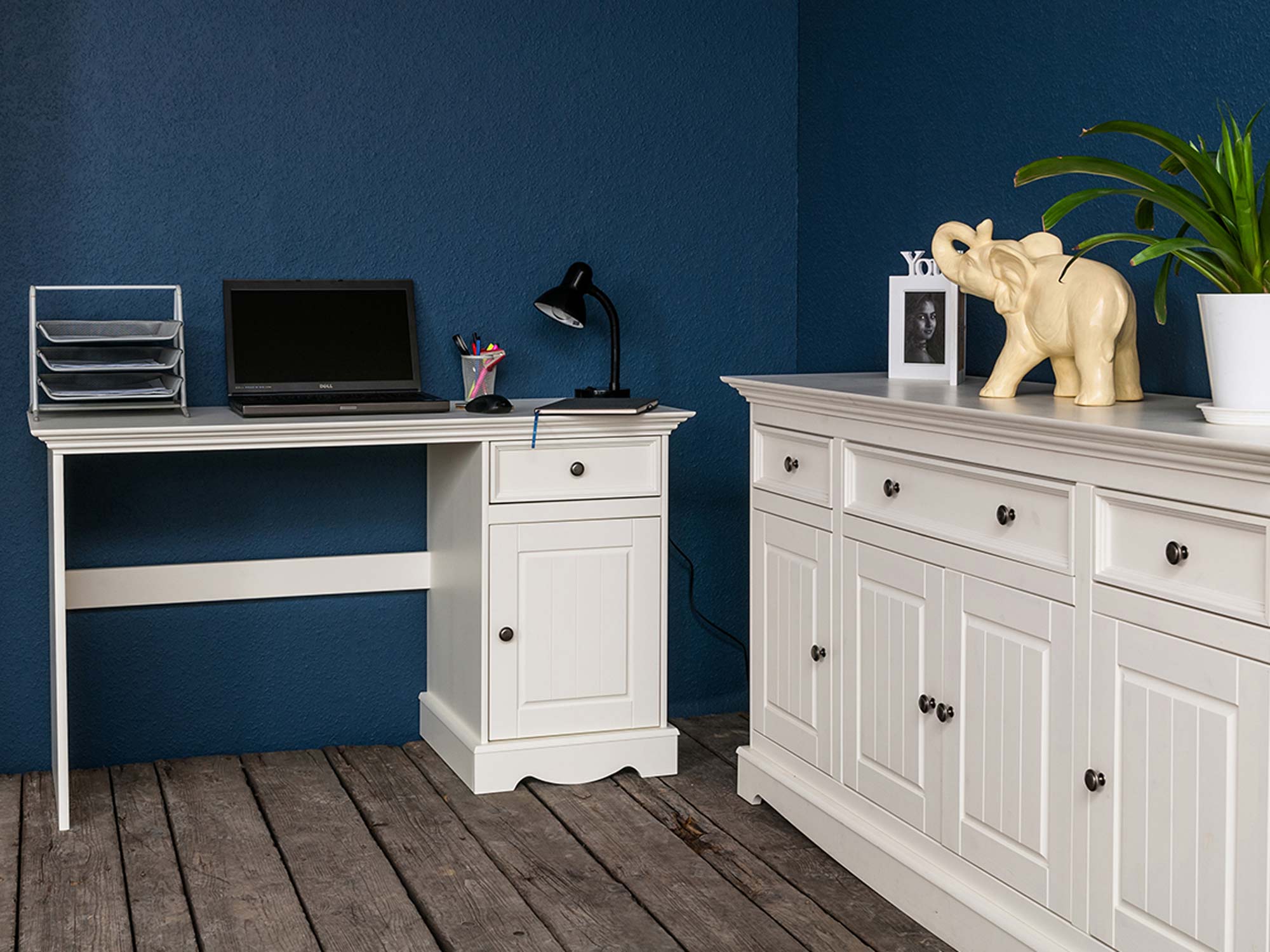 Przede wszystkim prezentowane białe biurko pojedyncze INGRID to mebel wykonany ze starannością o każdy szczegół oraz z najwyższej jakości materiałów meblarskich, mianowicie z litego drewna sosny fińskiej. Nie bez powodu drewno jest jednym z najszlachetniejszych materiałów meblarskich, gdyż jest to gwarancja solidność wykonania oraz znakomitej trwałości na wiele pokoleń. Ponadto, szafa zaprojektowana w stylu prowansalskim, znakomicie wpasuje się w klasyczne aranżacje o charakterze vintage.