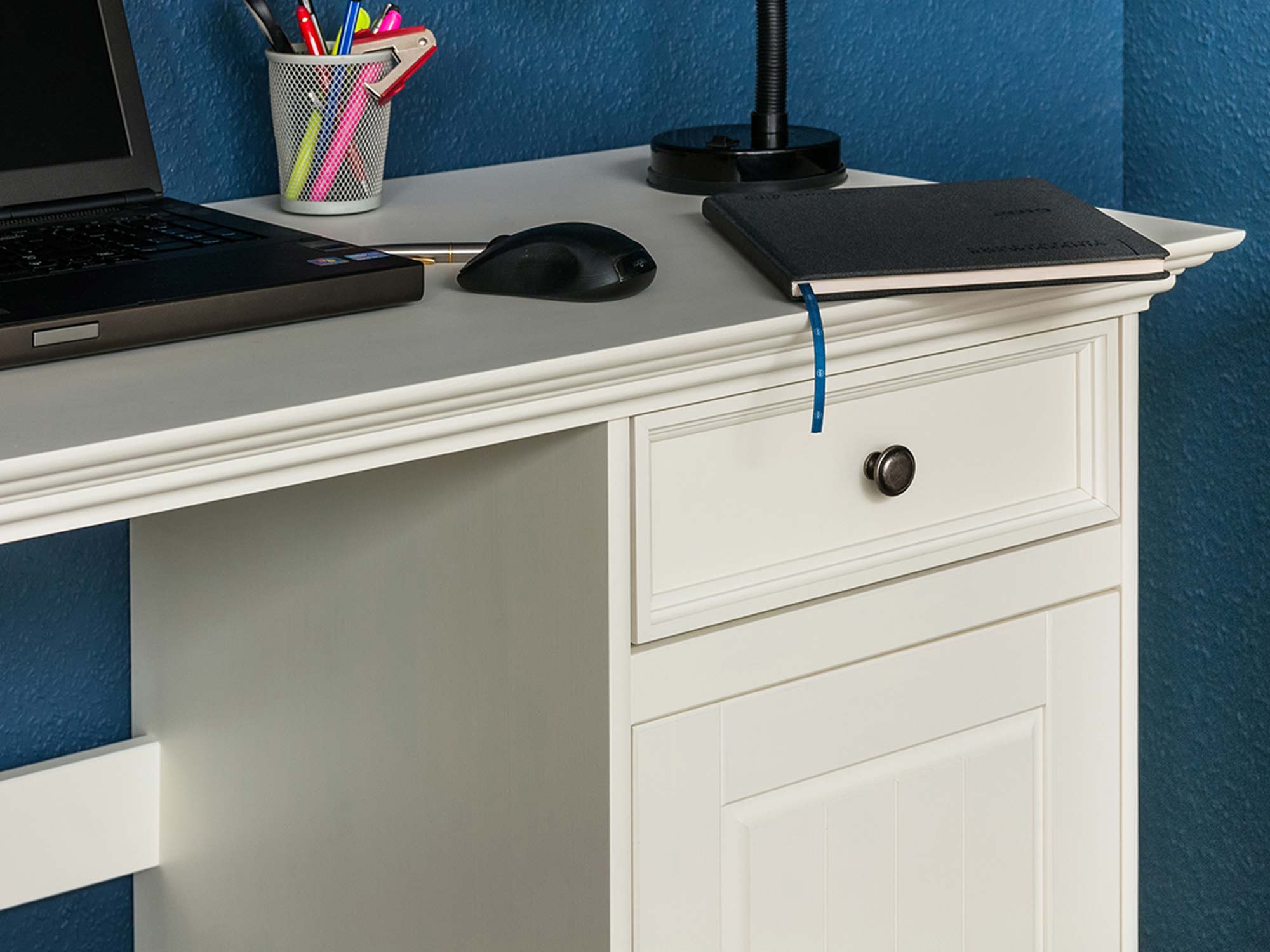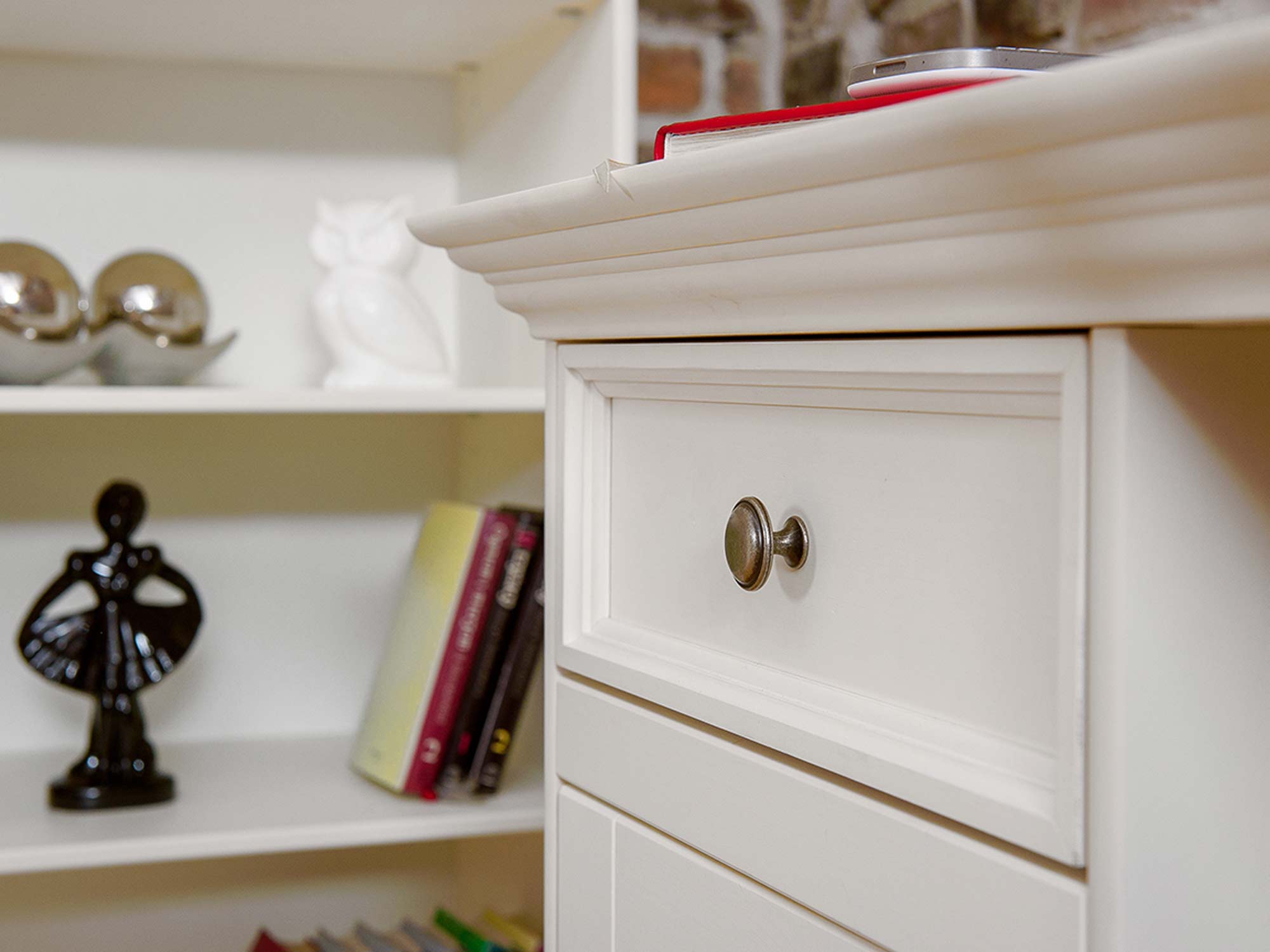Białe biurko klasyczne zbliżenie szuflada INGRID