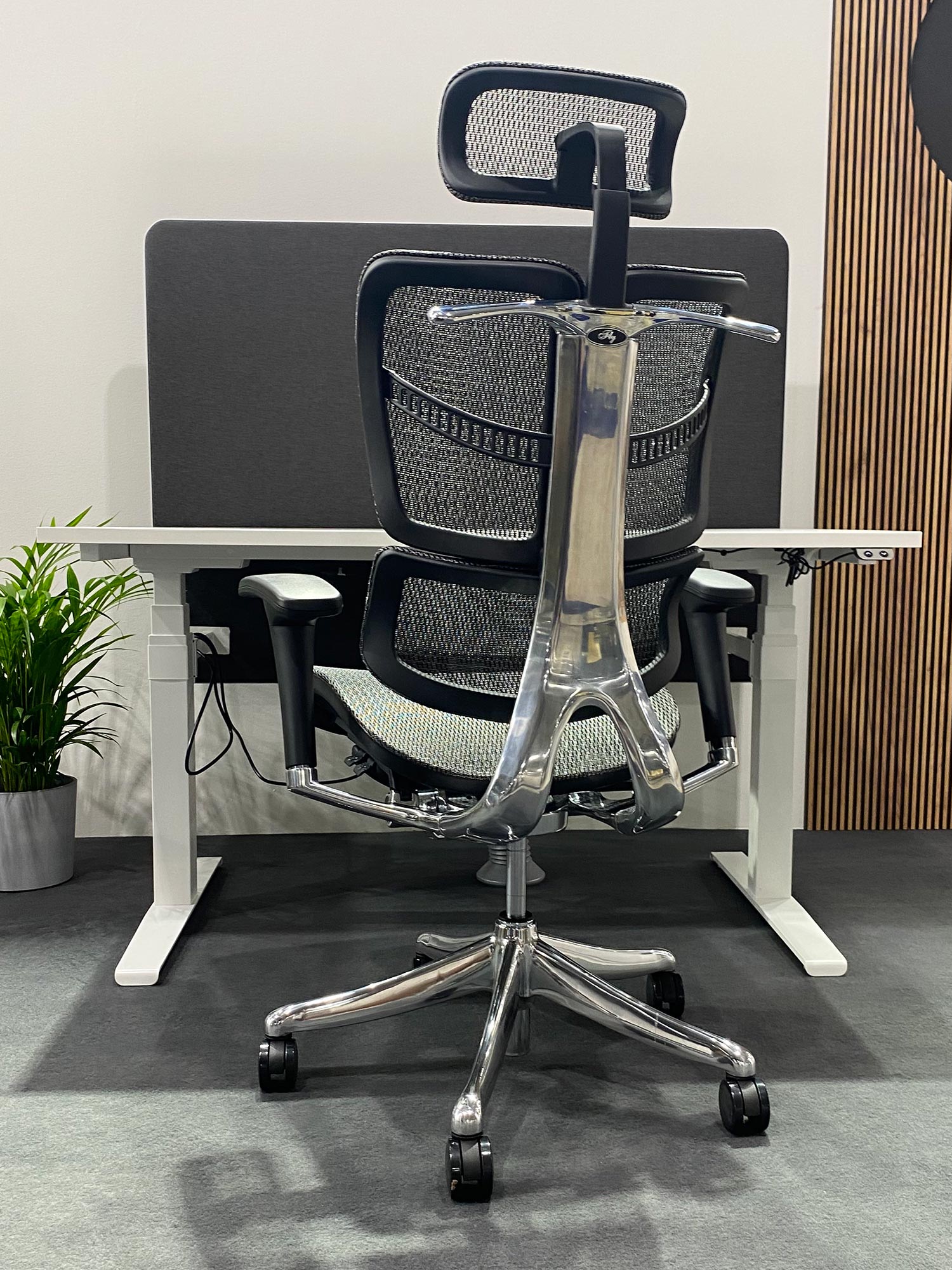ERGOFLY FLY T-07 Grey to zaawansowany technologicznie fotel biurowy zaprojektowany z myślą o zdrowiu kręgosłupa i komforcie użytkownika. Trójstrefowe oparcie z niezależnymi uchwytami zapewnia indywidualne dopasowanie, a zagłówek 3D odciąża mięśnie szyi, umożliwiając pełną regenerację podczas pracy.