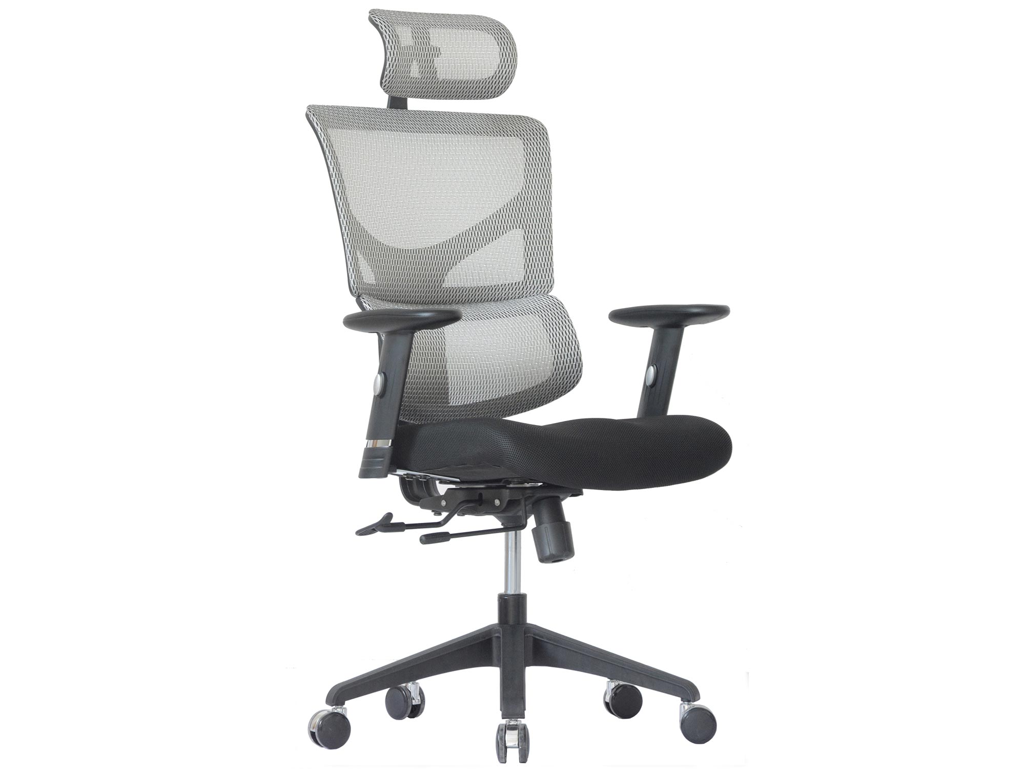 Mechanizm Synchro umożliwia synchroniczne odchylenie oparcia i siedziska w proporcji 1:3, z możliwością blokady w czterech pozycjach. Całość wsparta jest na wytrzymałej podstawie z nylonu, a miękkie kółka zapewniają bezpieczne użytkowanie na parkietach i panelach.