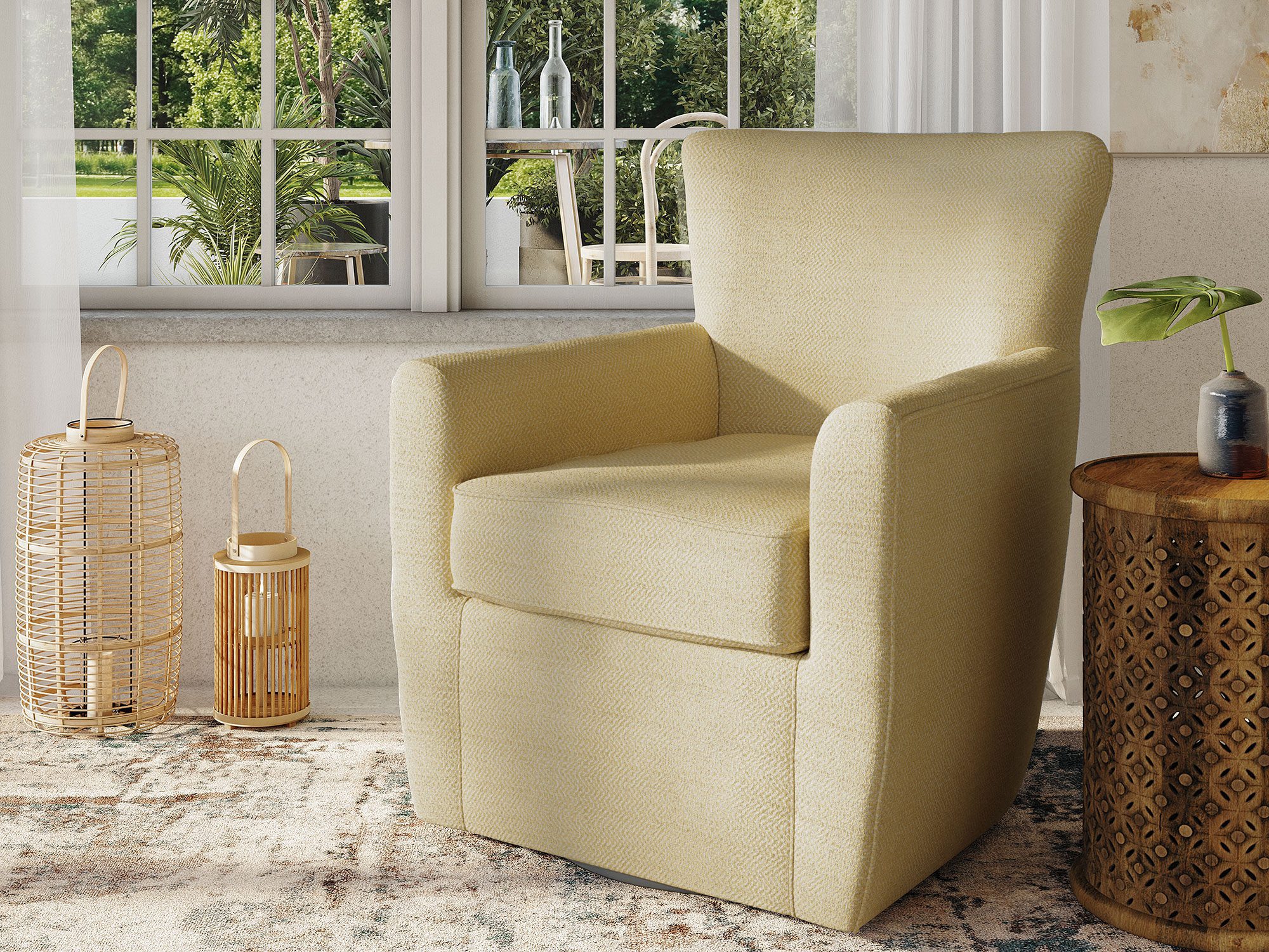 Fotel Obrotowy w Jasnożółtym Kolorze z Luksusową Tapicerką Szenilową – Edinburgh