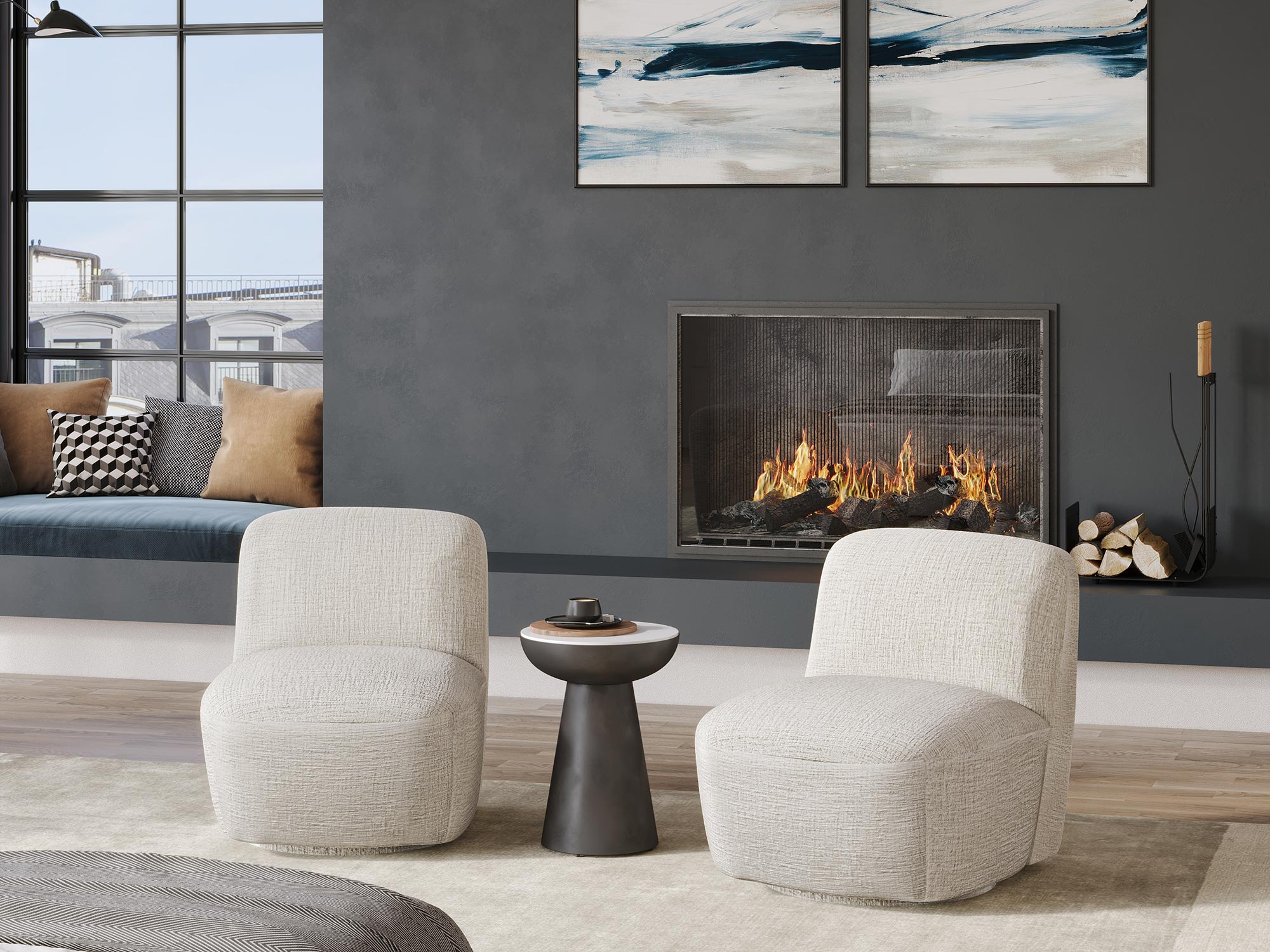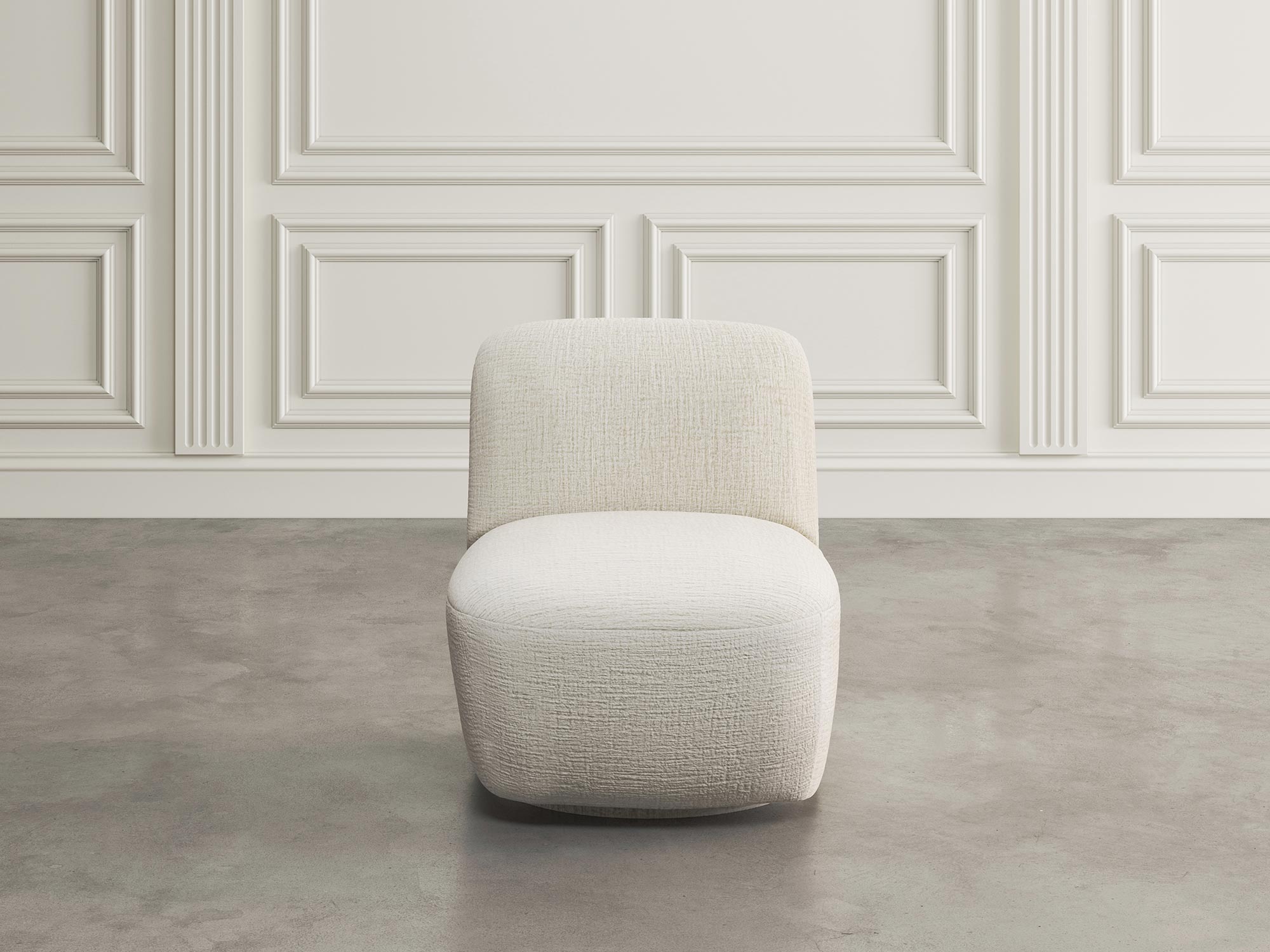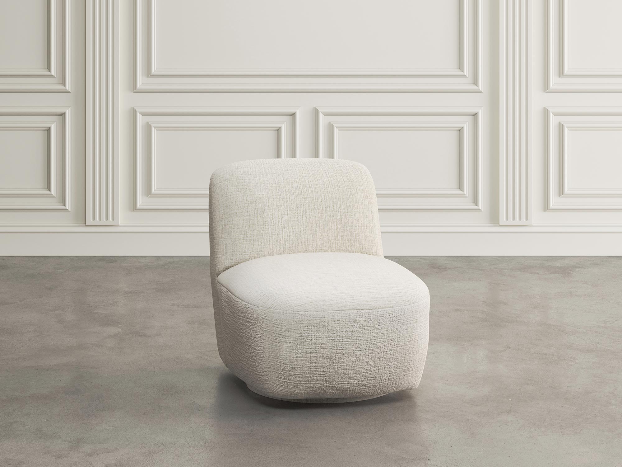 Fotel Obrotowy w Perłowej Bieli z Obłymi Kształtami – Edinburgh