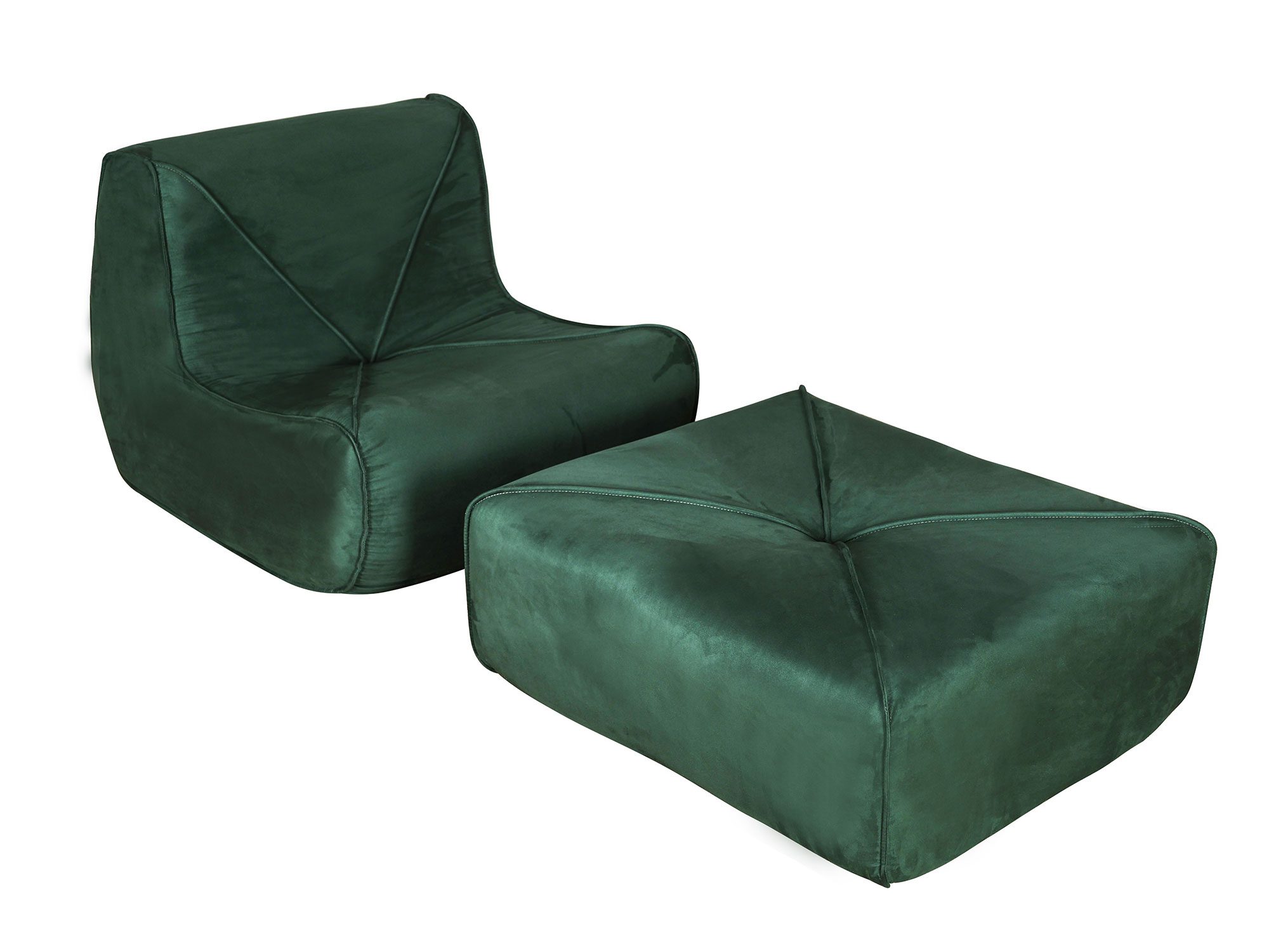 Fotel z Podnóżkiem w Butelkowej Zieleni z Welurową Tkaniną – Zenith