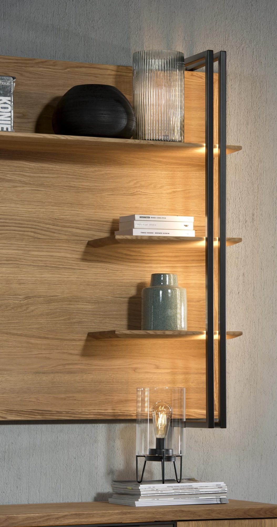 Proste i eleganckie meble do salonu Toledo wykonane z najwyższej jakości litego drewna dębowego z elementami fornirowanymi świetnie dostosują się do każdej aranżacji niejednym pokoju dziennym czy salonie. W dodatku mocna forma oraz eleganckie, nowoczesne wykończenie sprawią, że meble z drewna do salonu fenomenalnie uatrakcyjnią każde wnętrze. W skład zestawu wchodzą witryny dębowe nowoczesne, szafka pod telewizor dębowa, półki wiszące drewniane.