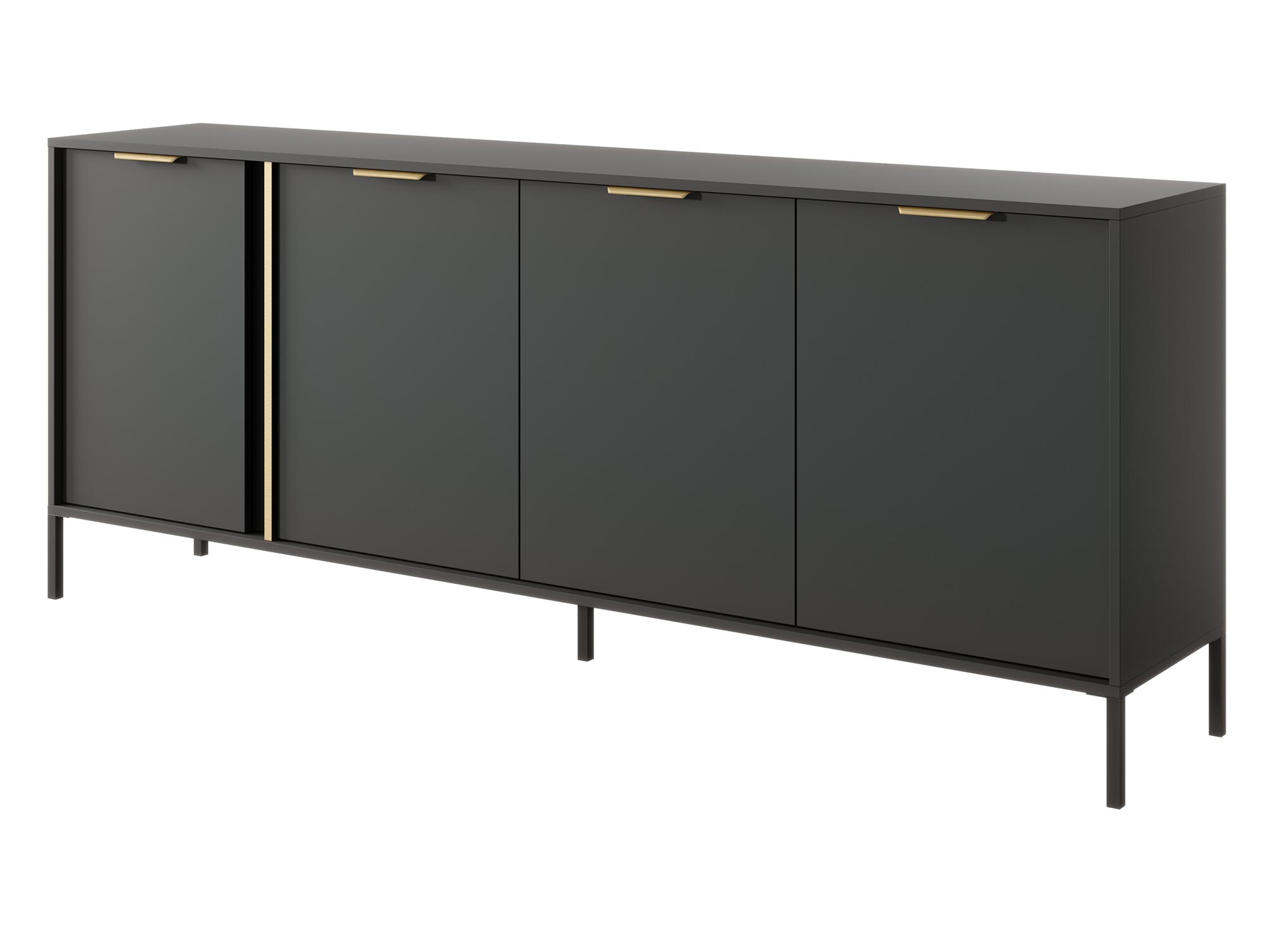 Zaprojektowana z myślą o najbardziej wymagających użytkownikach, Komoda Mars 202 cm łączy w sobie nie tylko praktyczność i funkcjonalność, ale także unikalny design, który wprowadza do każdego wnętrza powiew luksusu i elegancji. Klasyczne połączenie antracytu z złotymi elementami dekoracyjnymi czyni tę komodę prawdziwym dziełem sztuki, idealnym do stworzenia modnego i funkcjonalnego salonu.