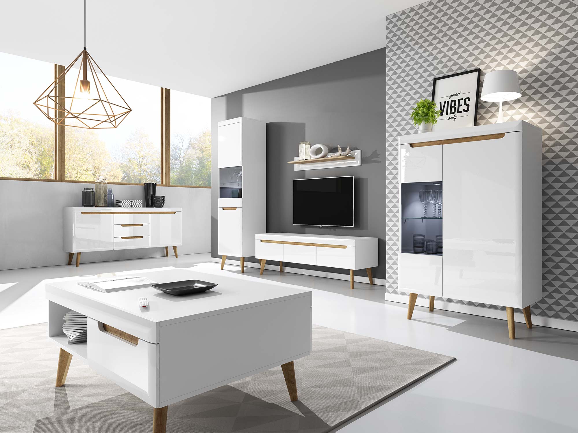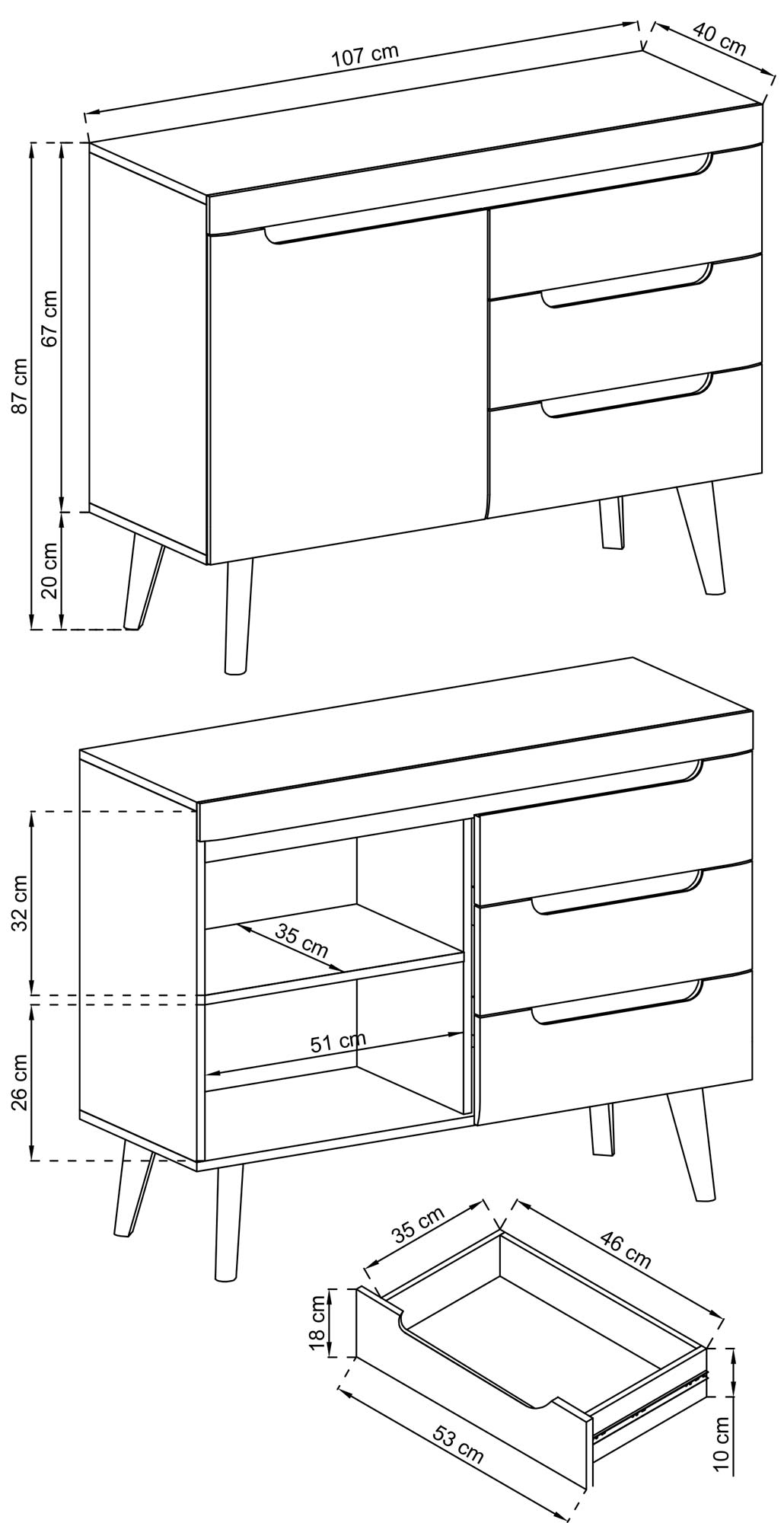Funkcjonalny mebel, który doskonale wkomponuje się w nowoczesny salon, jadalnię czy przedpokój. Rozwiązanie o wyjątkowym wzornictwie, dedykowane miłośnikom skandynawskiego stylu. Z pewnością atrakcyjna mała komoda BASTIEN stoi na wysokich, drewnianych nóżkach wykonanych z drewna, które zapewniają stabilność oraz ułatwiają utrzymanie czystości. Ponadto komoda widniejąca powyżej wyposażona została w trzy szuflady oraz szafkę z cichym domykiem w środku której odnaleźć można półki. Niewątpliwie zaokrąglone obrzeża tworzą unikalny design, obok którego nie da się przejść obojętnie. Dodatkowo nowoczesną nutę nadają z kolei frezowane uchwyty na frontach, gwarantujące wygodę podczas codziennego użytkowania.