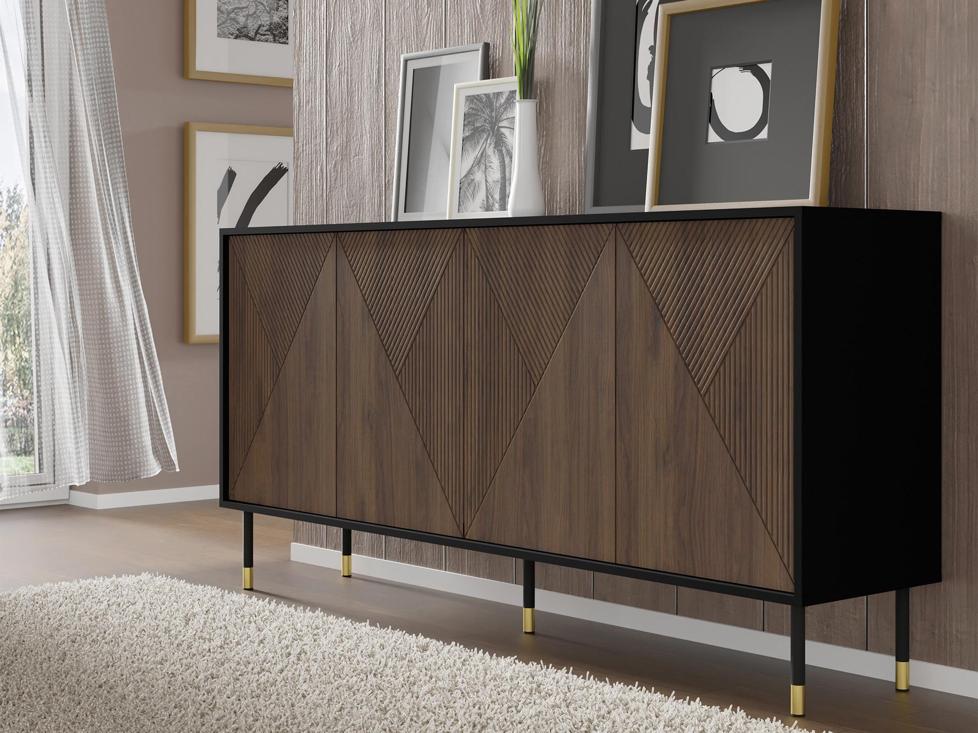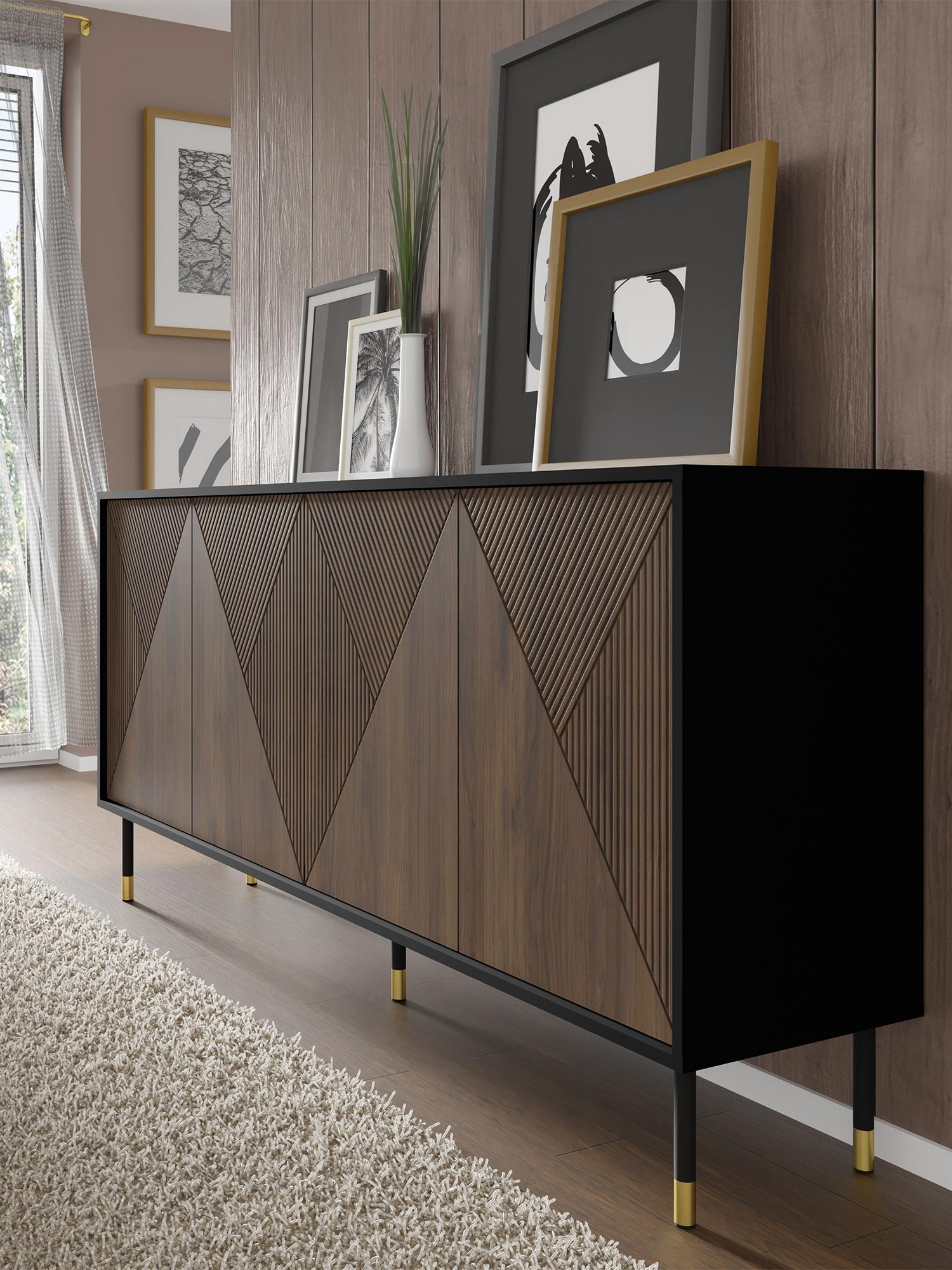 Czterodrzwiowa Komoda Cora Do Salonu to mebel, który łączy nowoczesny design z praktycznymi rozwiązaniami, idealnie komponując się w każdym wnętrzu. Jej elegancki wygląd i funkcjonalność sprawiają, że jest to doskonały wybór do Twojego salonu, wprowadzając do niego styl i komfort.