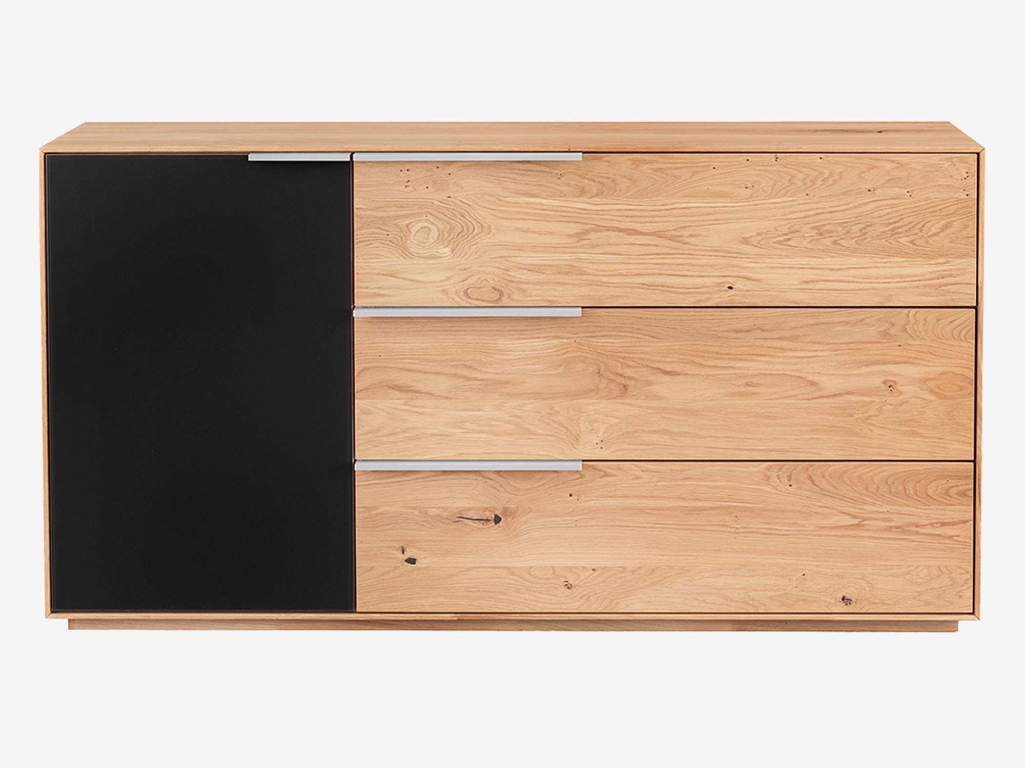 Projekt jest nowoczesny, ale nie chłodny. Minimalistyczny rysunek bryły, smukłe metalowe uchwyty i wyciszone okucia składają się na mebel, który po prostu dobrze pracuje każdego dnia. A gdy zechcesz zmienić klimat – wymień dodatki, a komoda nadal będzie „grać” z nowym wystrojem. Bo prawdziwe drewno jest ponadczasowe.