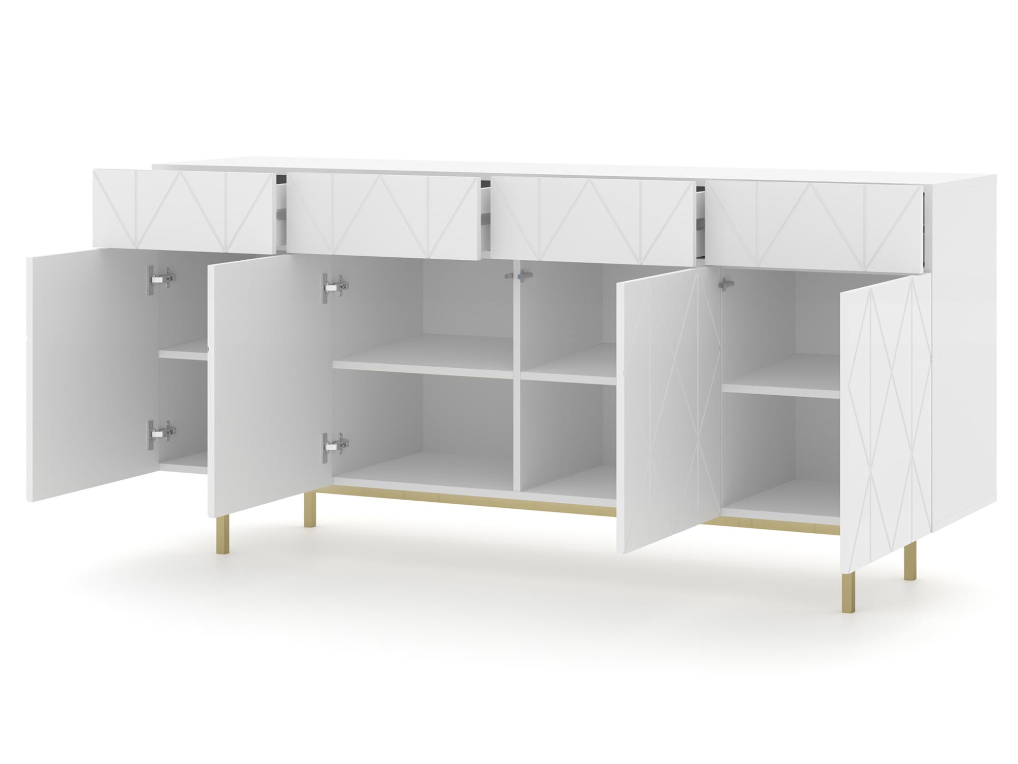 - Komoda posiada 4 drzwi oraz 4 szuflady.