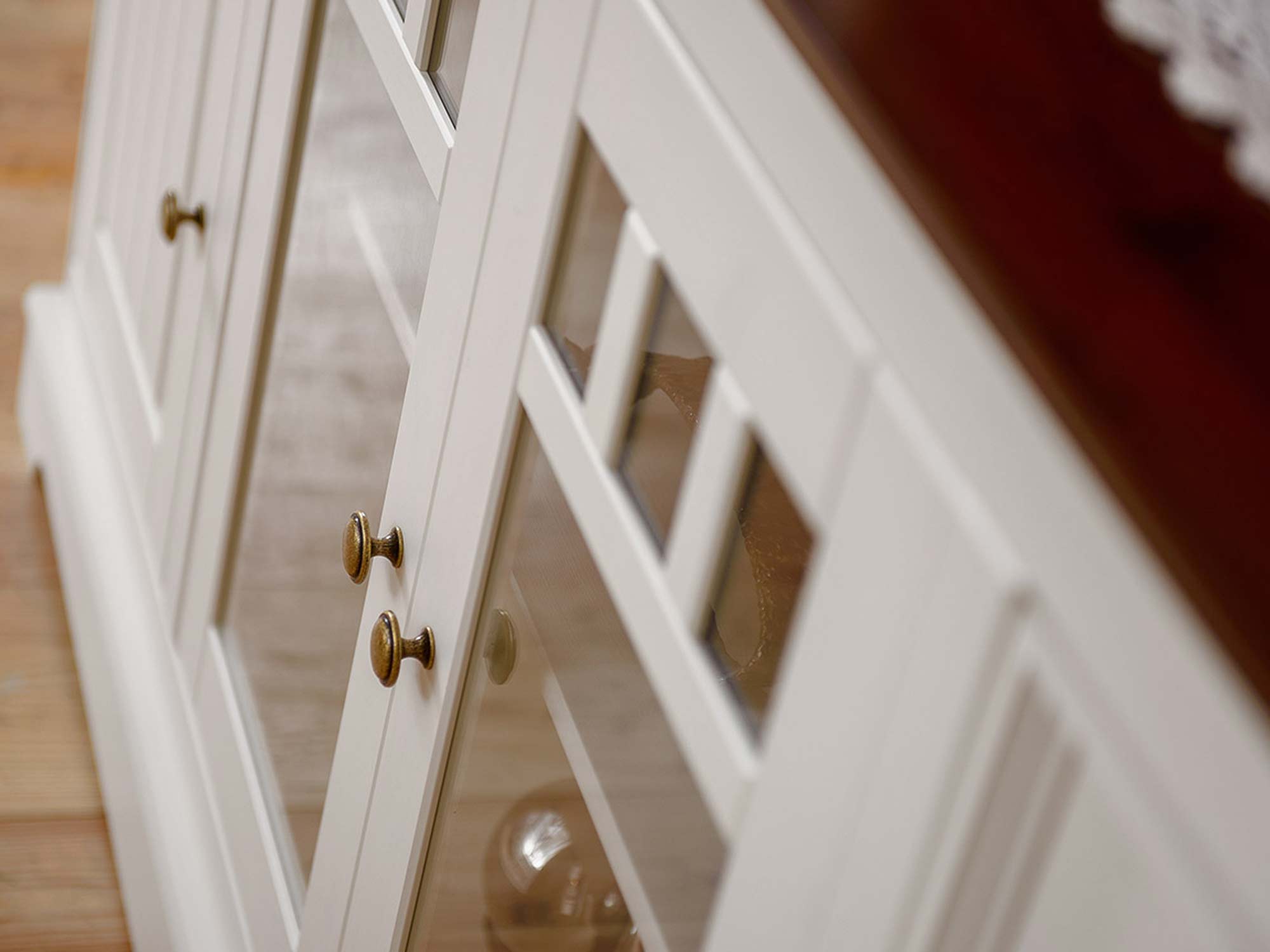 Duża komoda vintage biała przeszklone drzwiczki INGRID