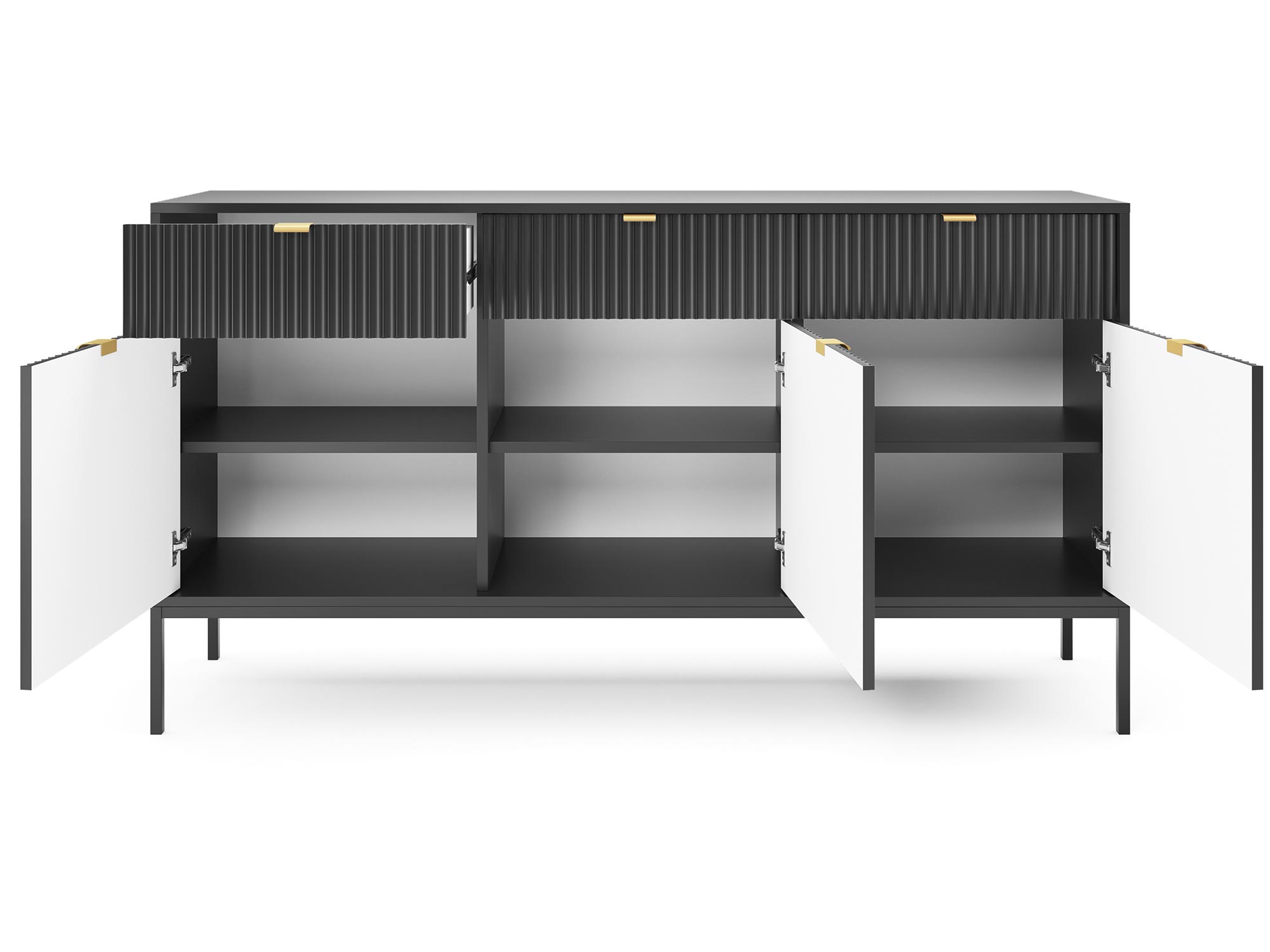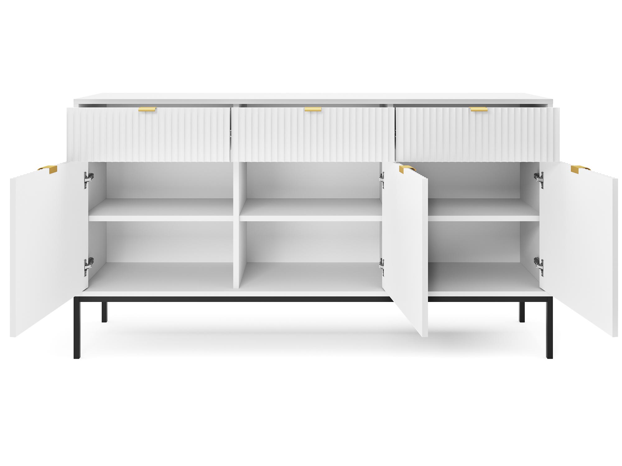 Komoda Sivas 154 cm z Złotymi Akcentami to więcej niż mebel – to wyrażenie nowoczesnego podejścia do designu, gdzie każdy detal ma znaczenie. To wybór dla tych, którzy cenią sobie połączenie estetyki z funkcjonalnością. Niezależnie od tego, czy zdecydujesz się na wersję czarną, szarą czy białą, komoda ta stanie się nieodłącznym elementem Twojego domu, dodając mu charakteru i klasy.