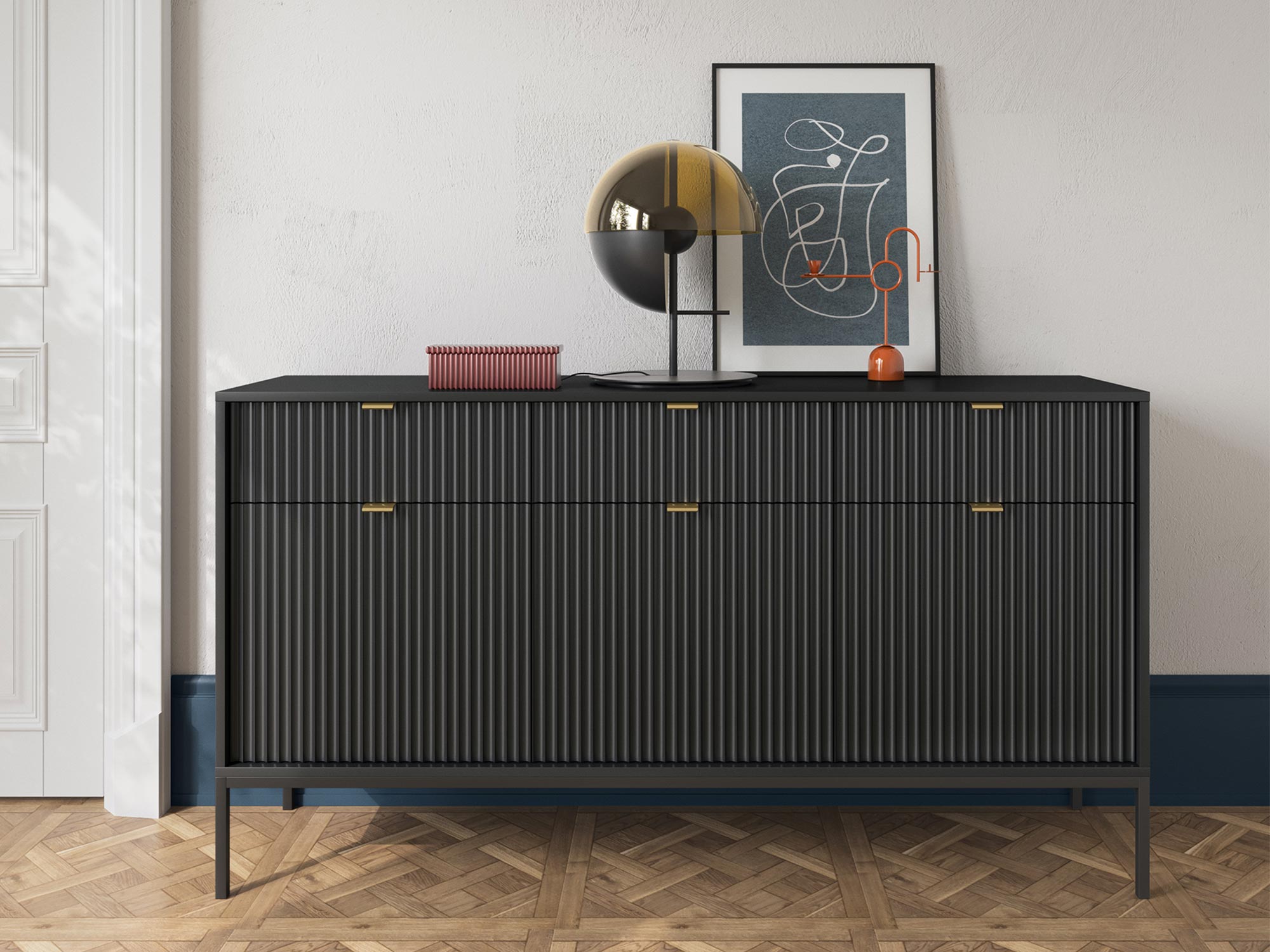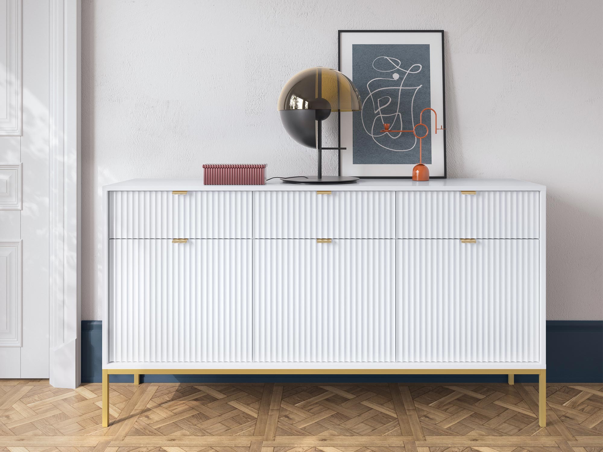 Komoda Sivas 154 cm z Złotymi Akcentami – Synonim Elegancji i Funkcjonalności