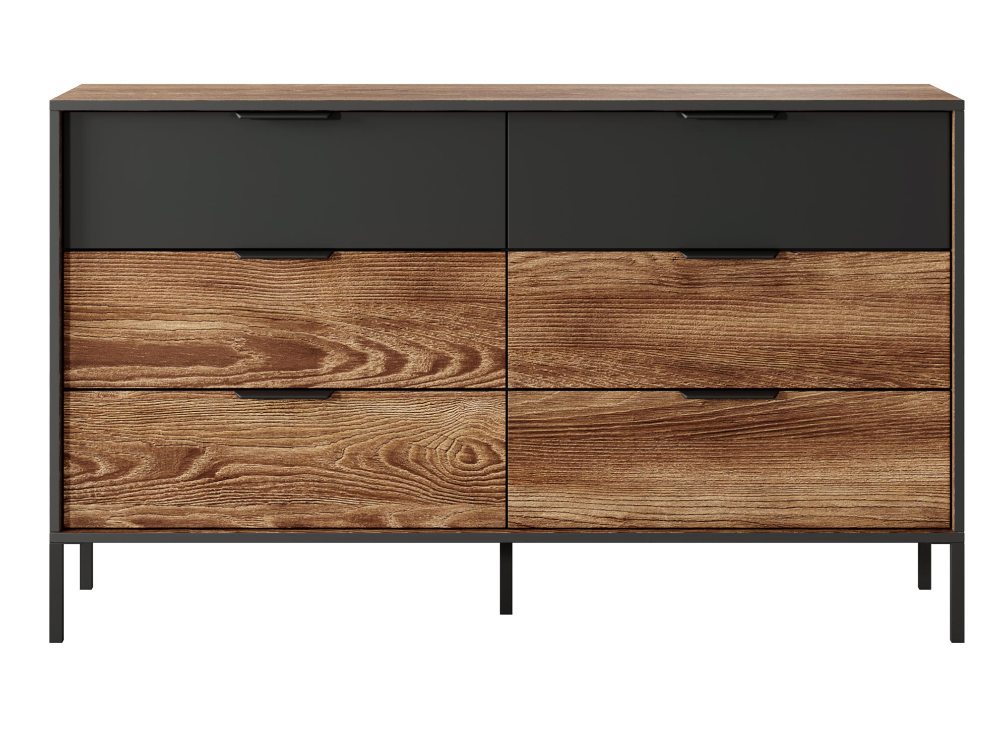 Drewniana komoda z czarnymi frontami i metalowymi nogami, styl industrialny