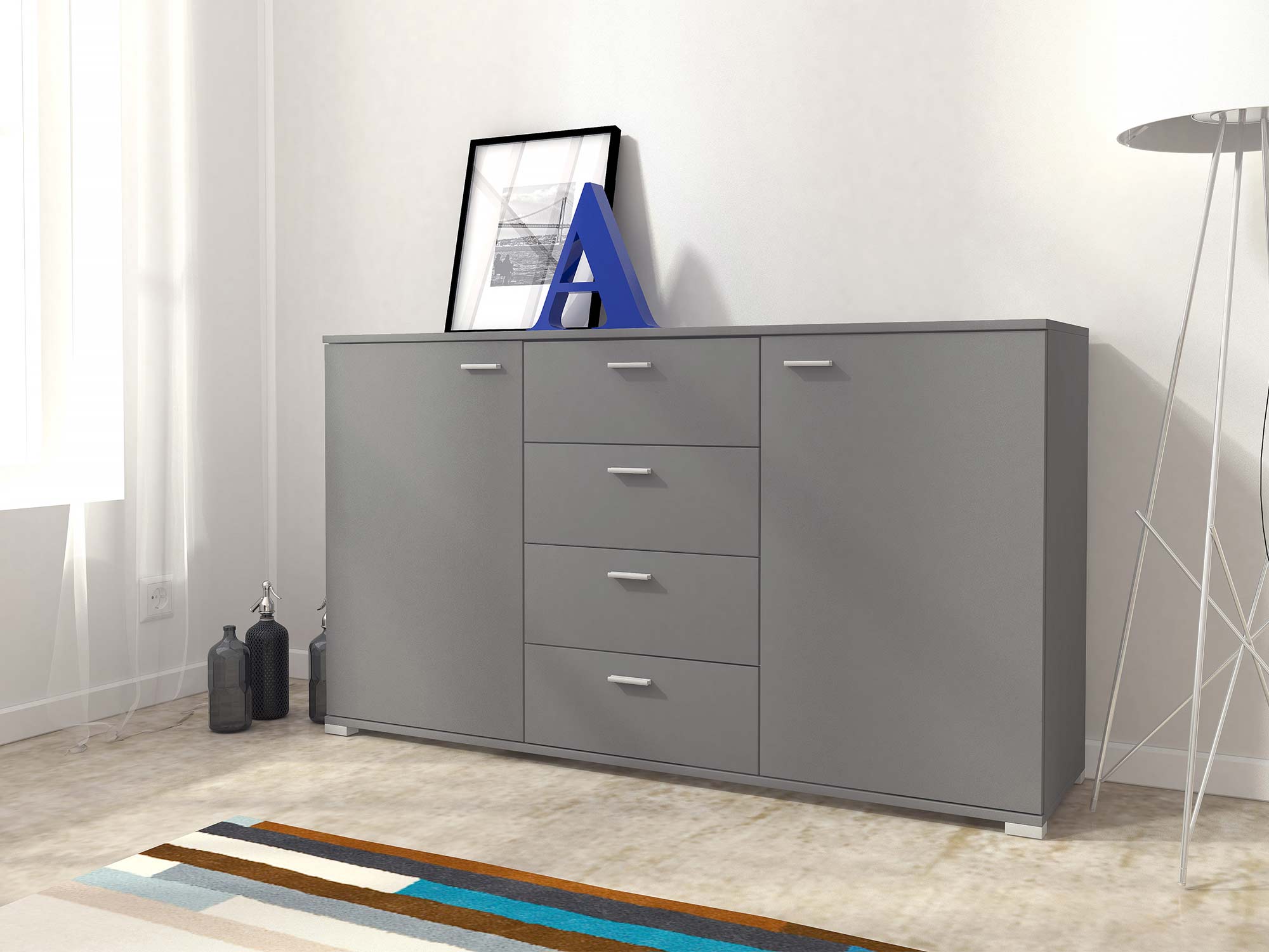 • Nowoczesna estetyka: Prosty, ale wyrafinowany design komody 150 cm sprawia, że jest ona doskonałym dodatkiem do każdego nowoczesnego domu.