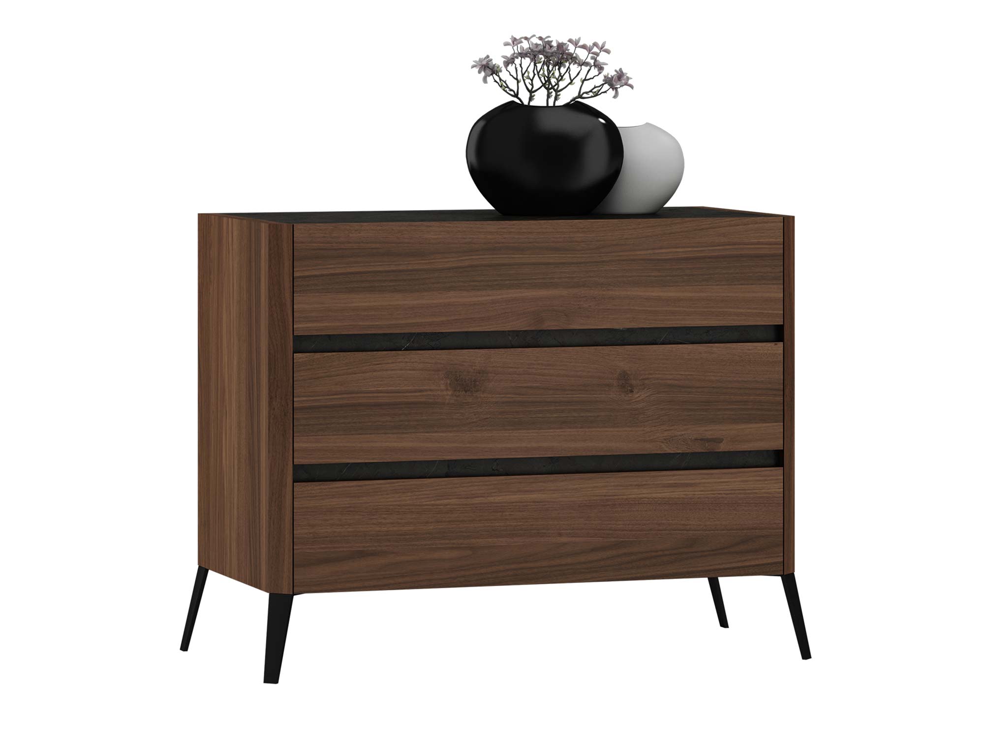 Komoda 3S Lumeria to esencja nowoczesnej klasyki w eleganckim wydaniu. Trzy pojemne szuflady, minimalistyczna forma oraz ciepły kolor orzecha baltimore sprawiają, że mebel ten jest nie tylko praktyczny, ale i stanowi ozdobę każdego wnętrza. To doskonałe połączenie funkcjonalności i wyrafinowanego designu, które zaspokoi potrzeby najbardziej wymagających klientów.