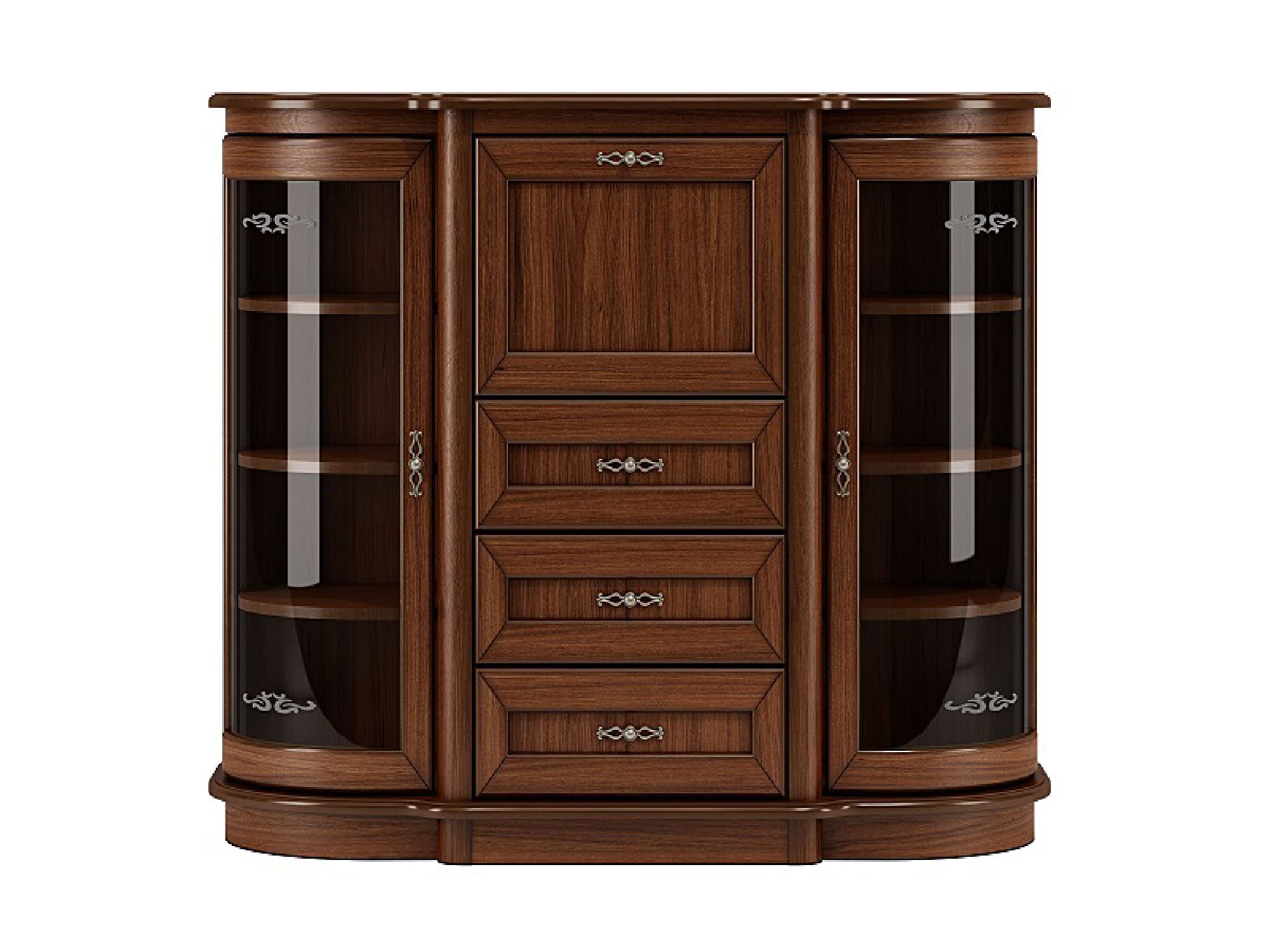 Drewniana duża komoda z barkiem i przeszkleniem po bokach