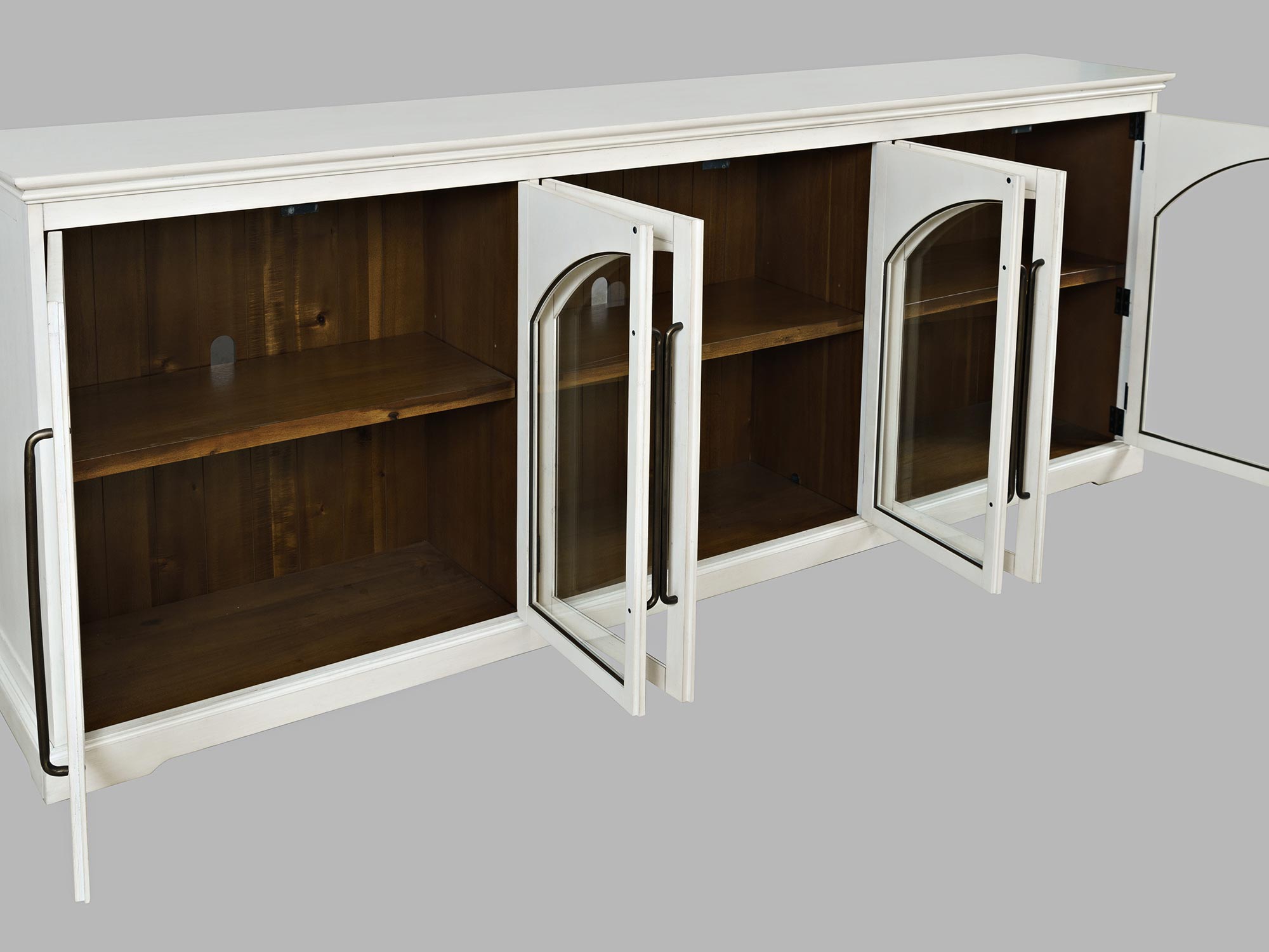 Komoda Biała z Sześcioma Przeszklonymi Drzwiami – Avola to wyjątkowy element, który doda elegancji i klasy każdemu wnętrzu. Wykonana z wysokiej jakości drewna akacji, łączy prostą formę z finezyjnymi detalami, takimi jak ozdobne łuki i eleganckie podłużne uchwyty. Dzięki przeszklonym drzwiom, doskonale eksponuje wnętrze, a regulowane półki pozwalają na dostosowanie przestrzeni do Twoich potrzeb. Idealna do salonu, jadalni lub sypialni.
