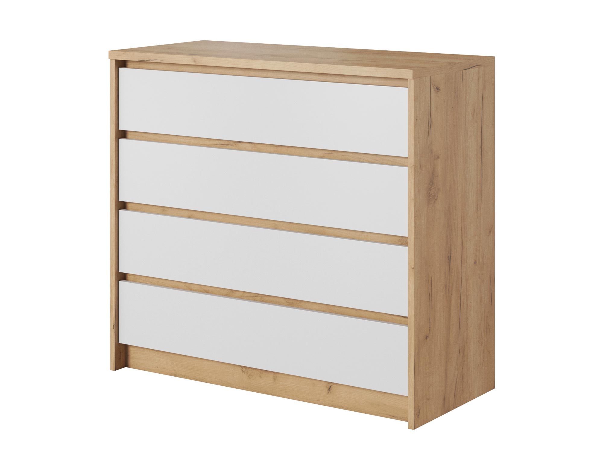 Przedmiotem oferty jest komoda z kolekcji OLSEN od polskiego producenta. Biała spokojna kolorystyka w połączeniu z naturalnym dębem pozwoli zbudować magiczną atmosferę w każdej sypialni. Komoda OLSEN posiada też cztery wygodne, praktyczne szuflady i zamknięta jest w idealnych wymiarach o szerokości 92,6 cm, wysokości 90 cm i głębokości 40,5 cm.