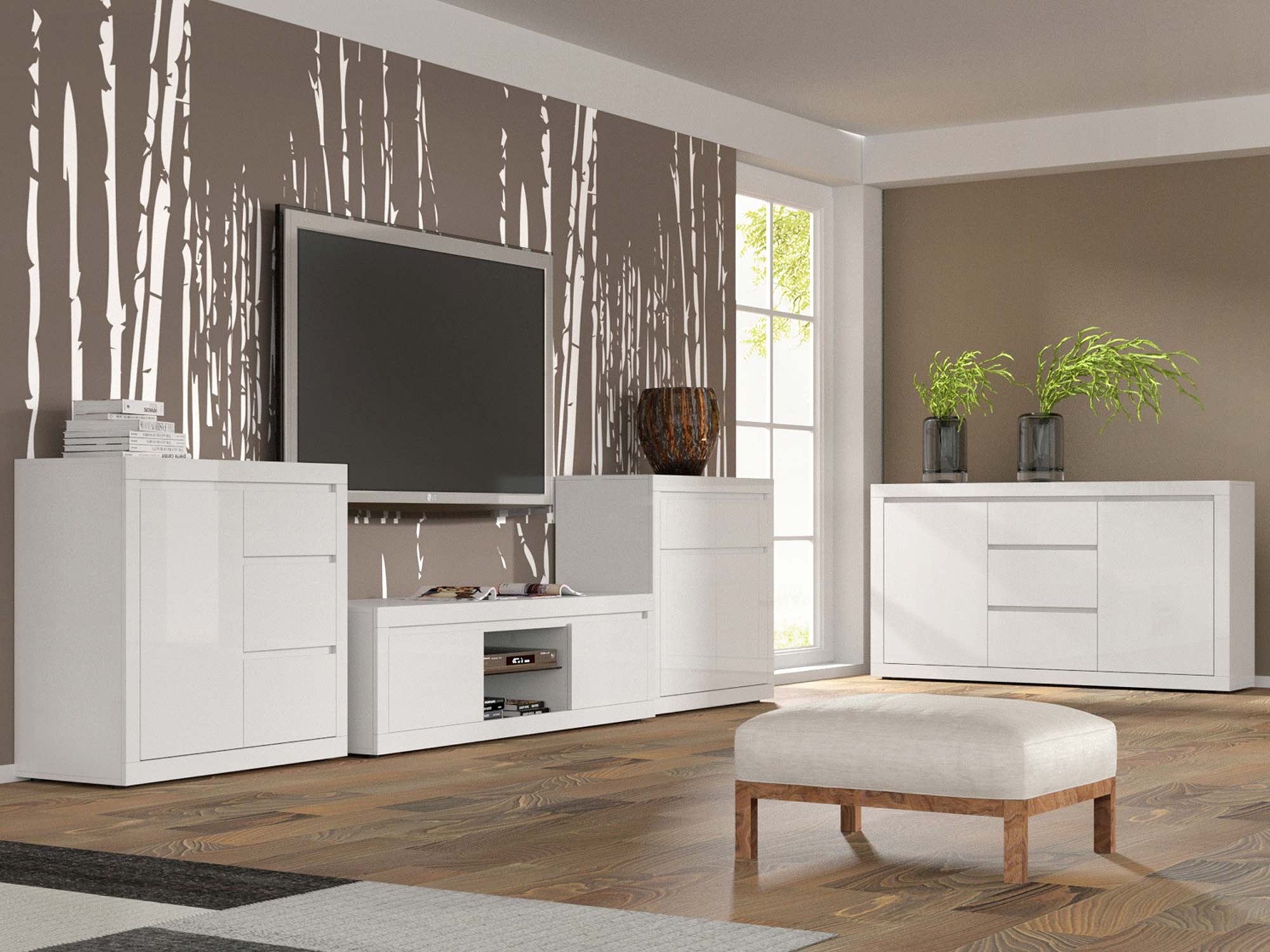 Niewątpliwie dzięki trzem pojemnym szufladom oraz dwóm przestrzeniom zamkniętym z łatwością można zorganizować przestrzeń. Co więcej komoda może służyć nie tylko do przechowywania, ale również do wyeksponowania drobnych dekoracji czy pamiątek. Przede wszystkim modernistyczny wygląd mebla pozwala na dopasowanie go niemalże do każdego wnętrza, gdzie bez wątpienie zaprezentuje się niezwykle elegancko. Dodatkowo wykończenie komody wysokim połyskiem to nowoczesne rozwiązanie dodające meblu klasy i szyku. Oferowana komoda posiada trzy pojemne szuflady oraz dwie duże przestrzenie zamknięte z półkami, co znacznie ułatwia organizację przestrzeni.