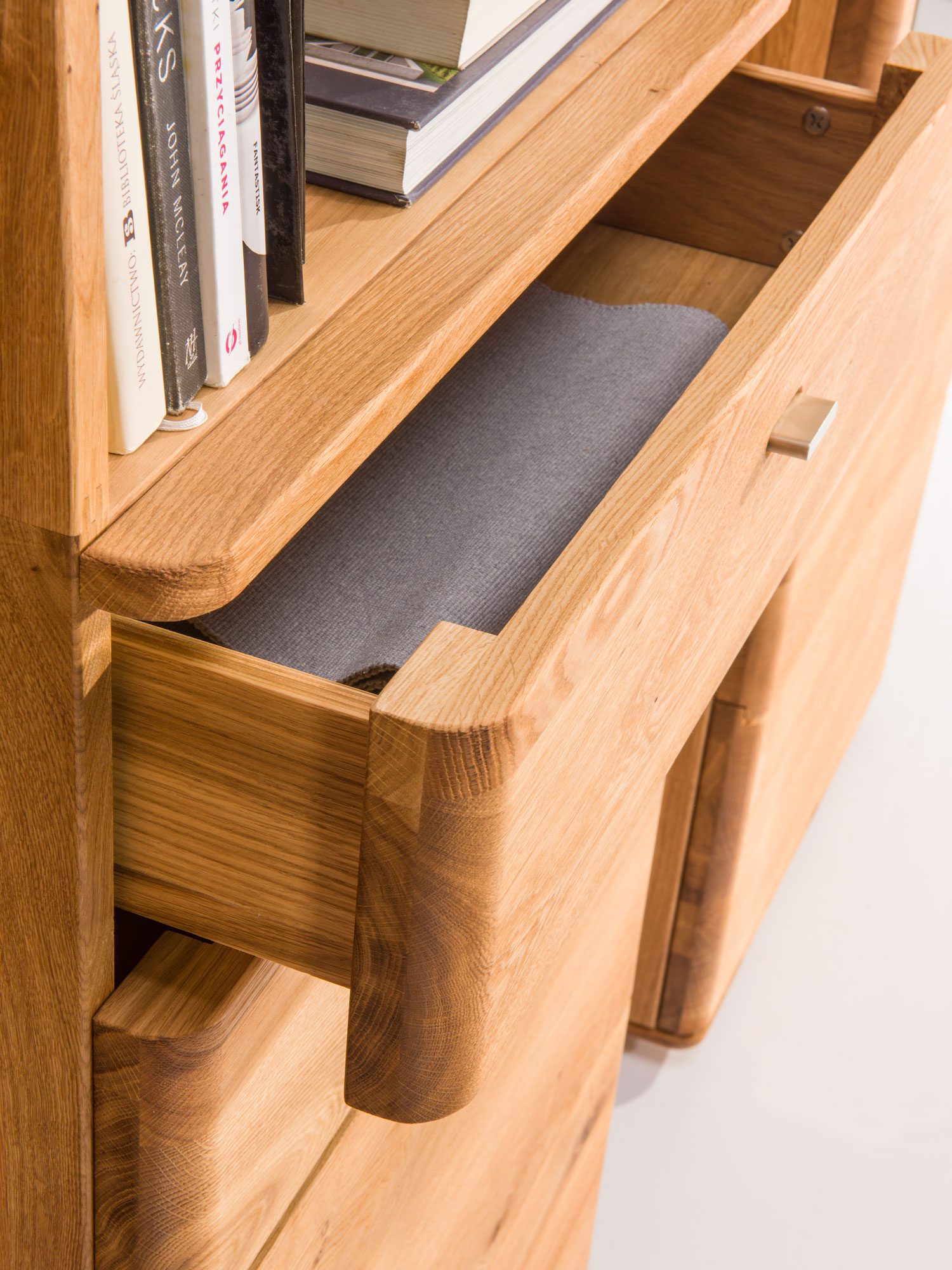 - Fronty: drewno lite, dąb sękaty deska
