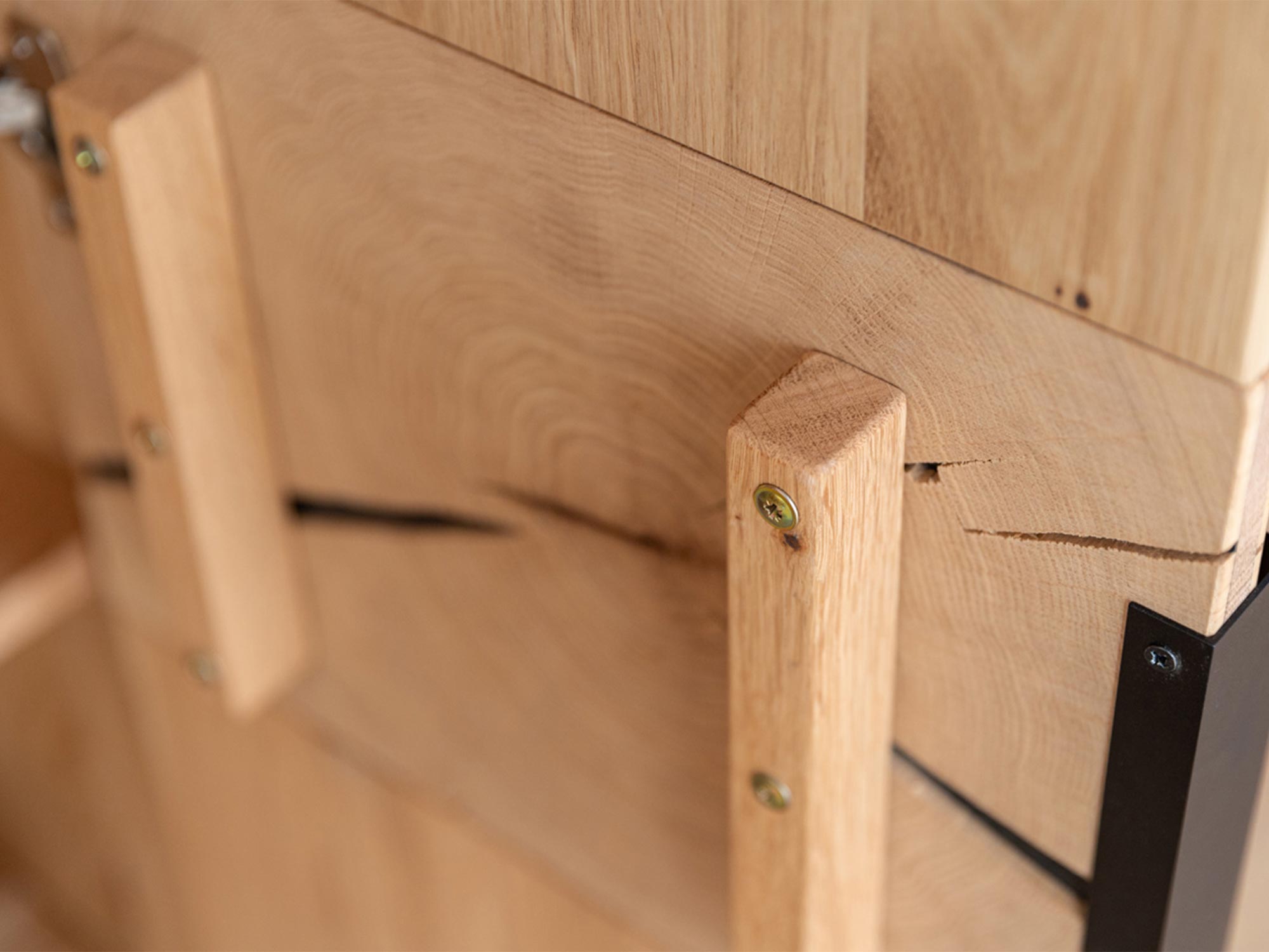 Komoda dębowa z czarnymi akcentami do nowoczesnych wnętrz