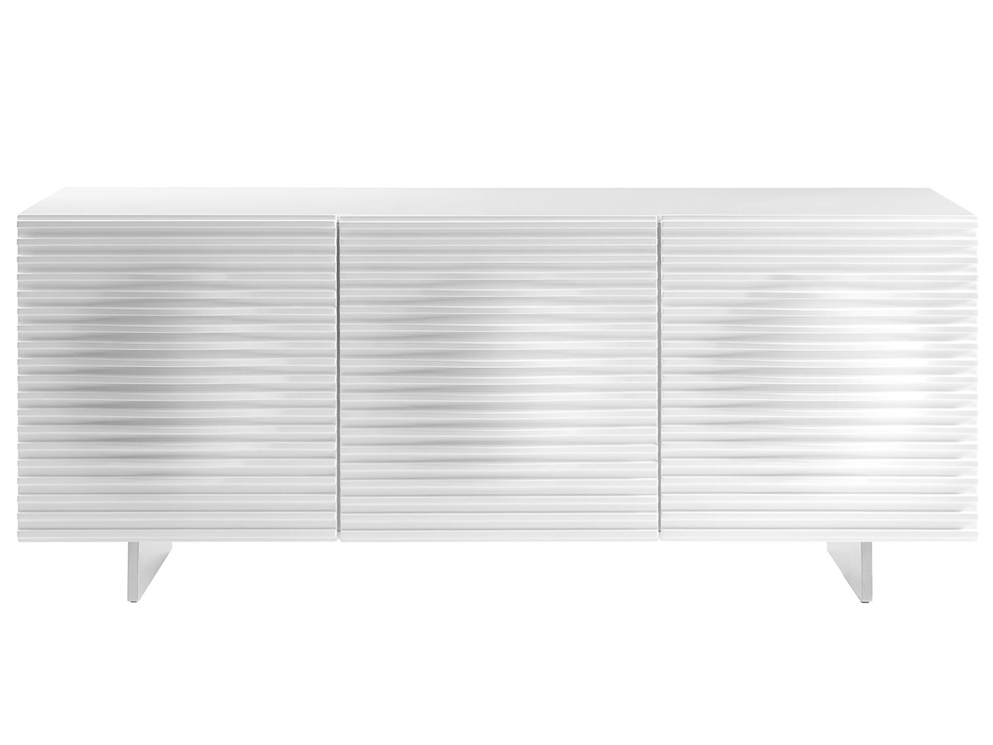 Komoda w styli modern classic w kolorze białym, wyróżniająca się parametrycznymi frontami, które nadają całości prostej formy unikatowy charakter.