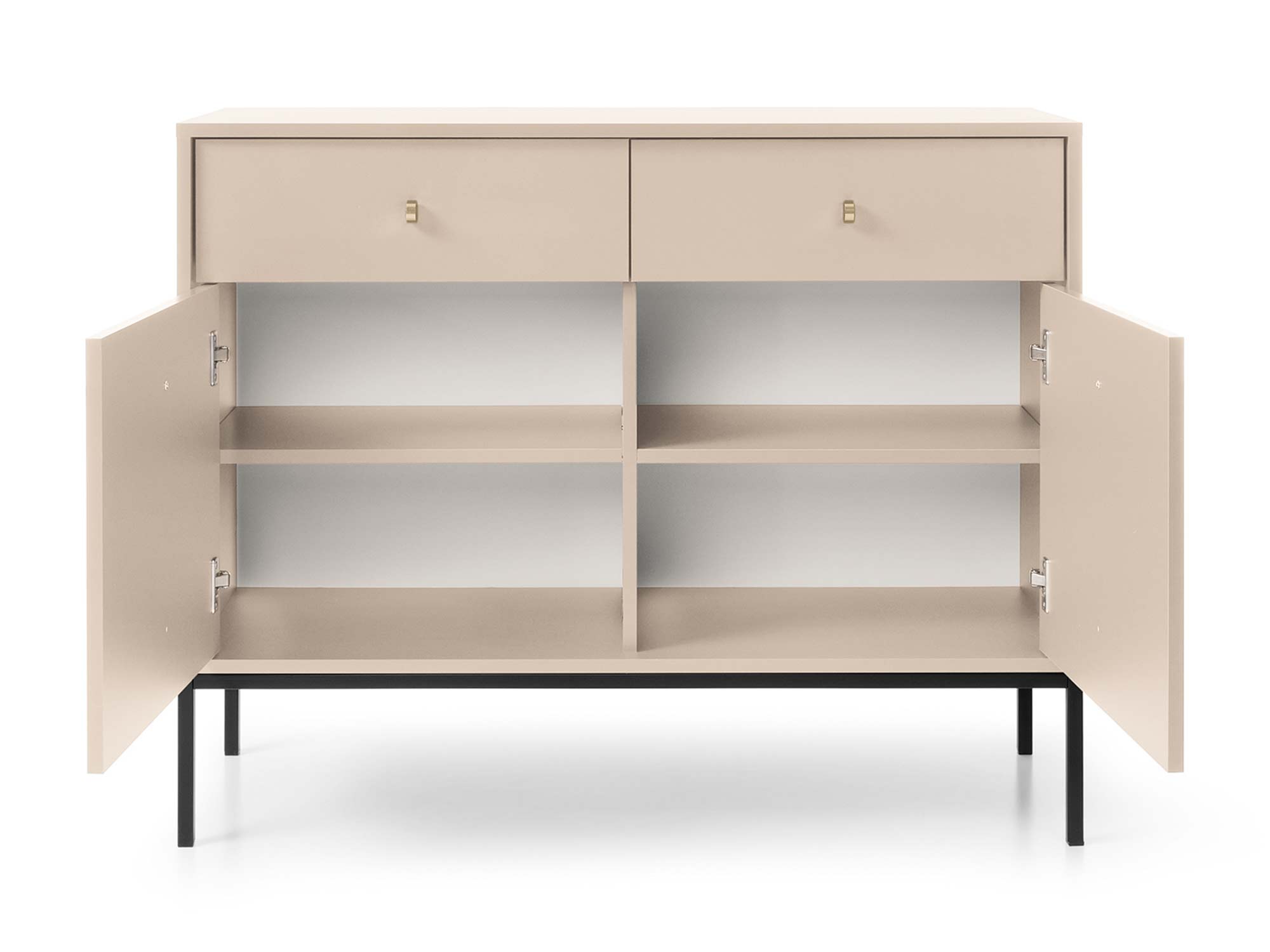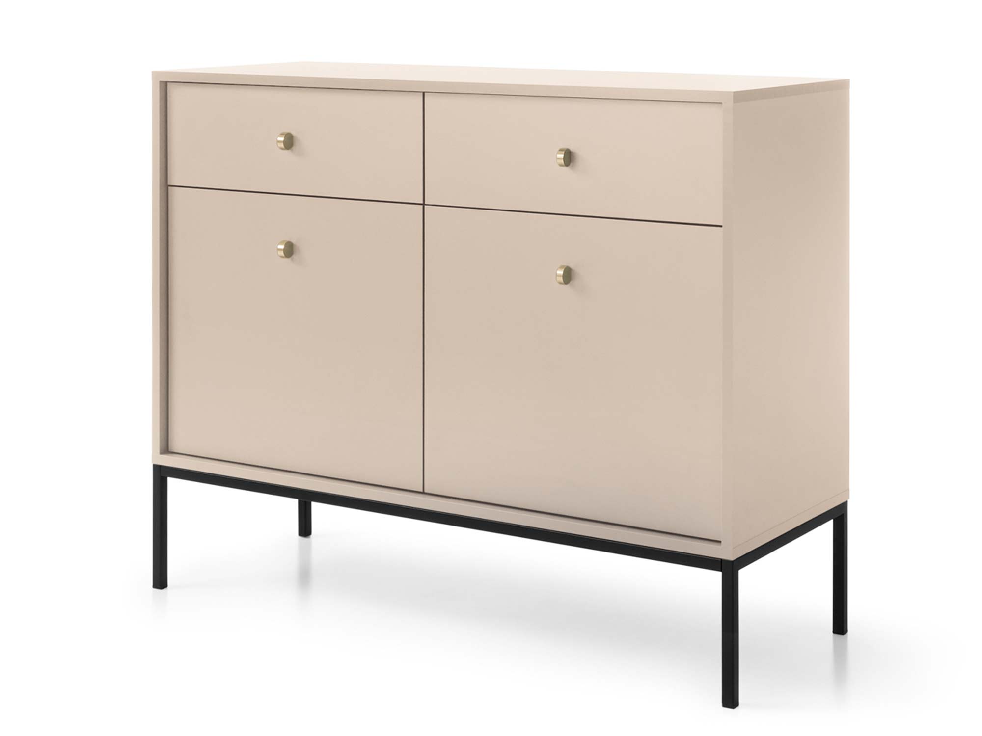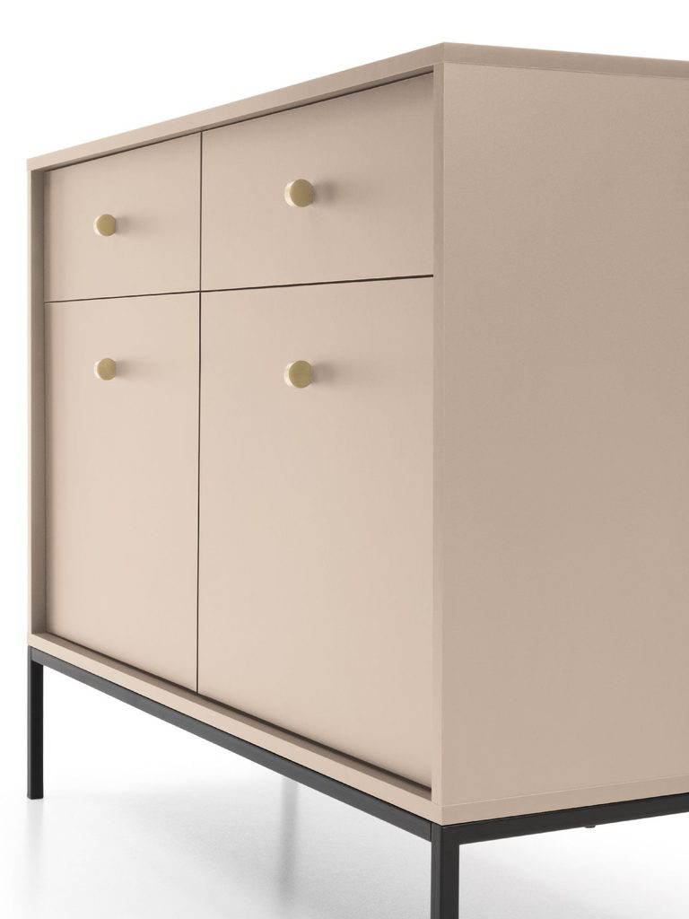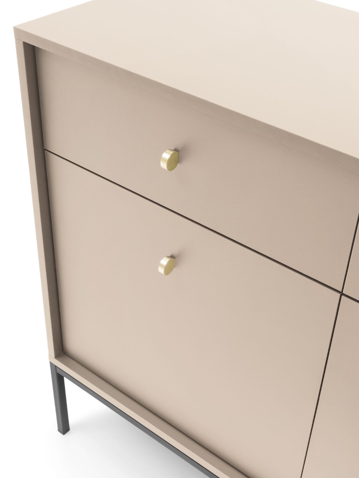 - Trwałość i stabilność: Podniesiona na delikatnej czarnej podstawie, komoda gwarantuje stabilność oraz długotrwałe użytkowanie.