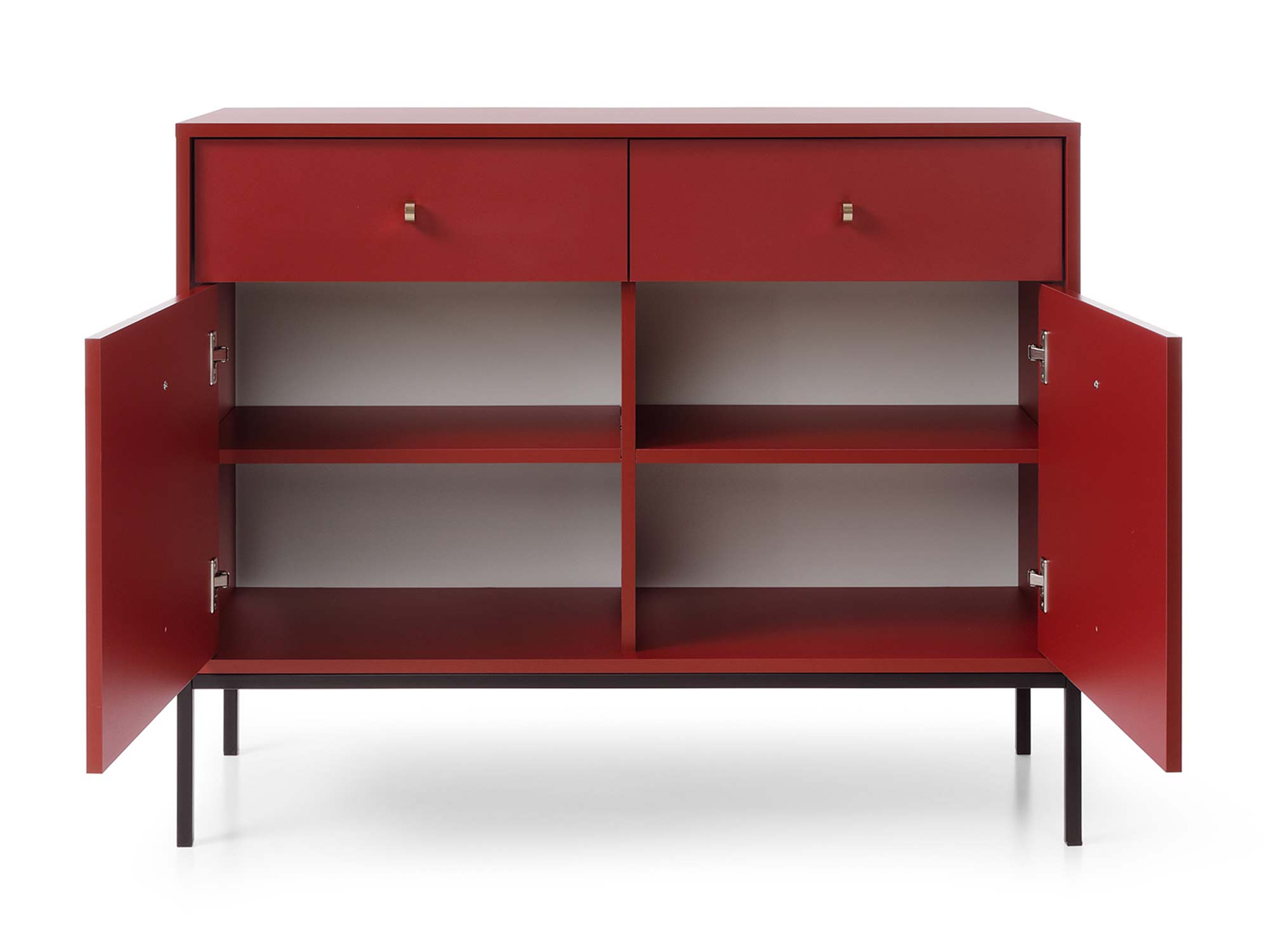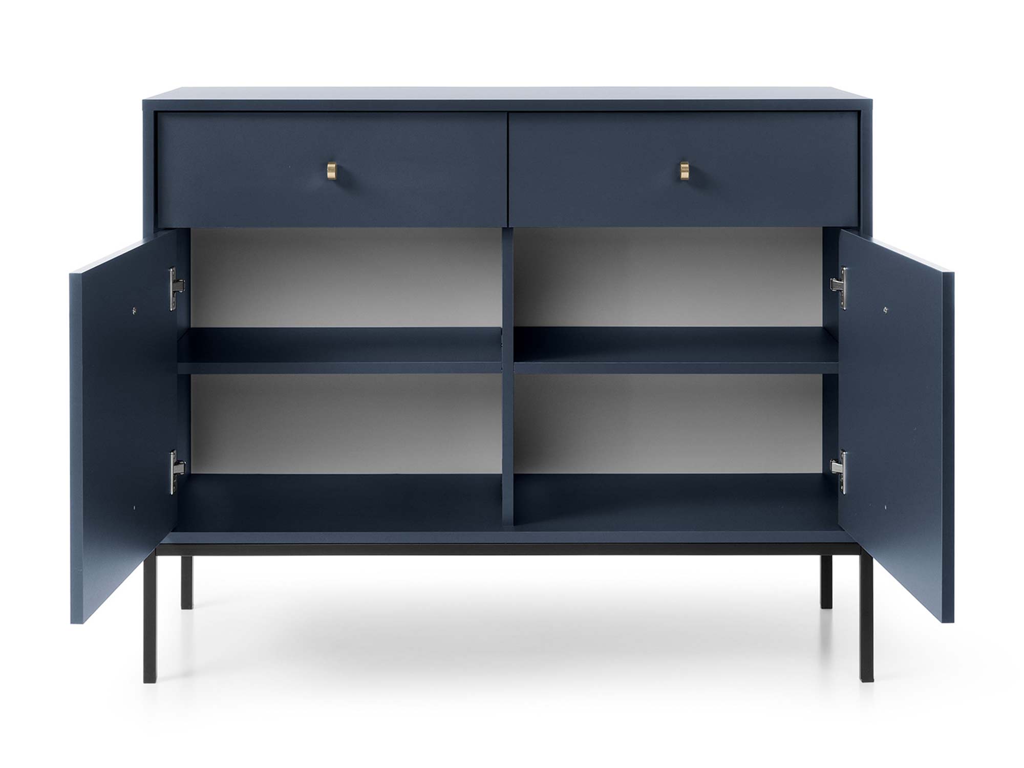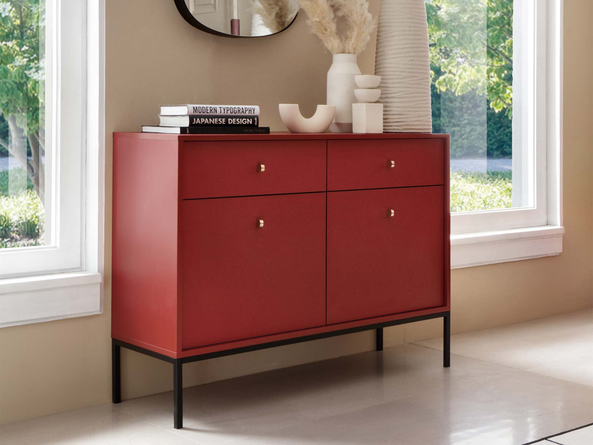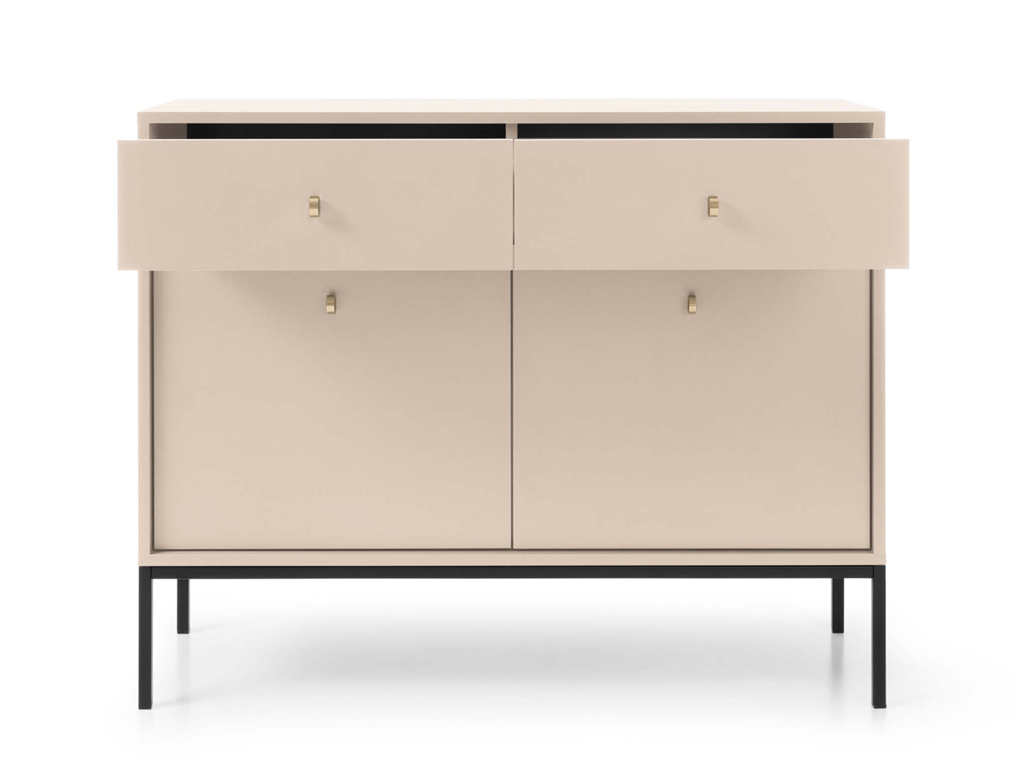 - Trwałość i stabilność: Podniesiona na delikatnej czarnej podstawie, komoda gwarantuje stabilność oraz długotrwałe użytkowanie.