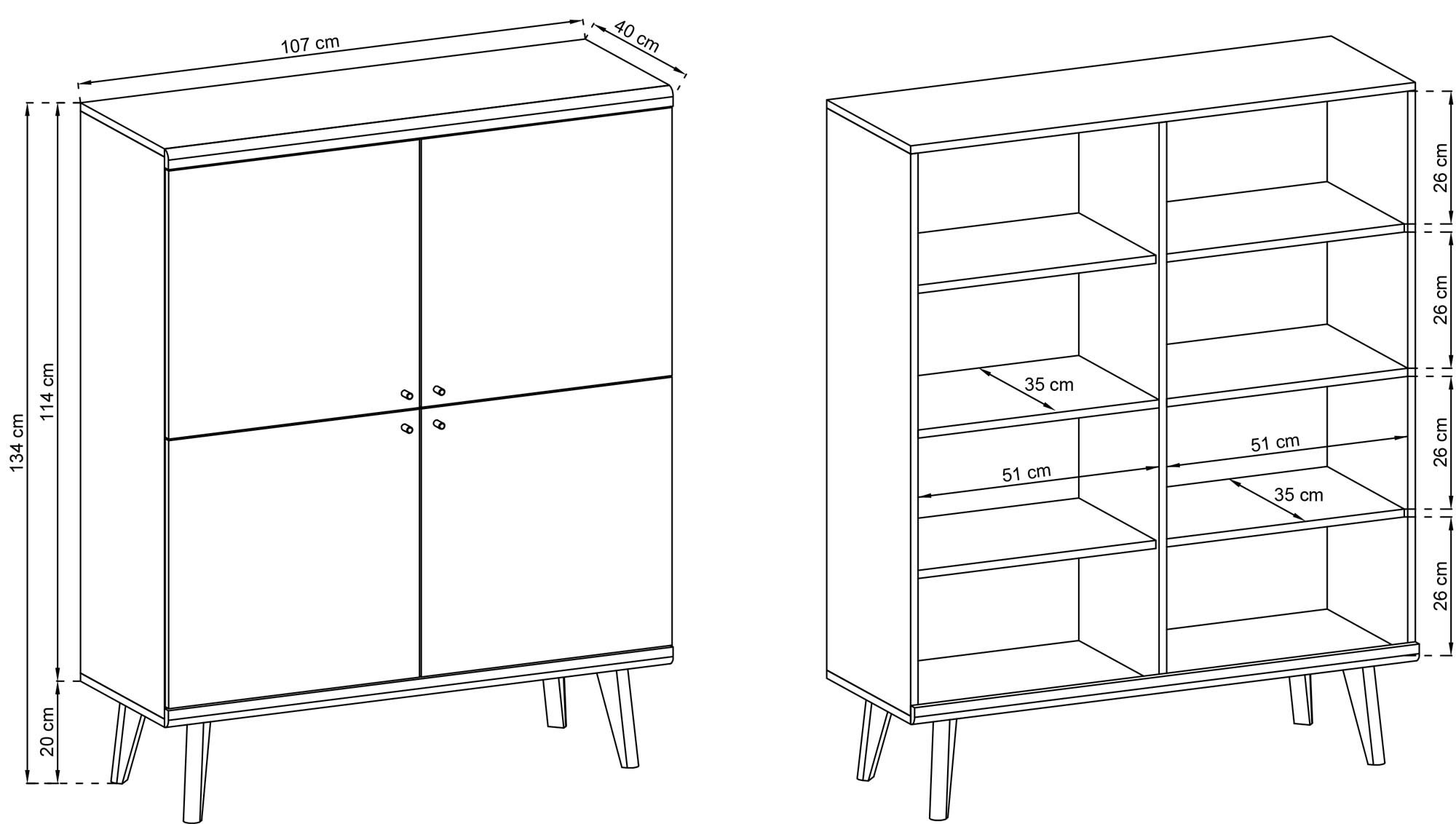 Głębokość: 40 cm / Szerokość: 107 cm / Wysokość: 134 cm