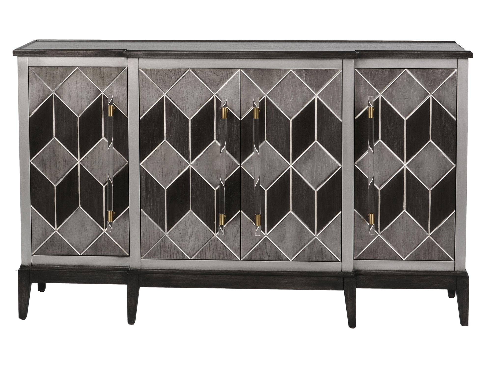 Komoda szara z intarsją i srebrnym wzorem 3D – Eleganza