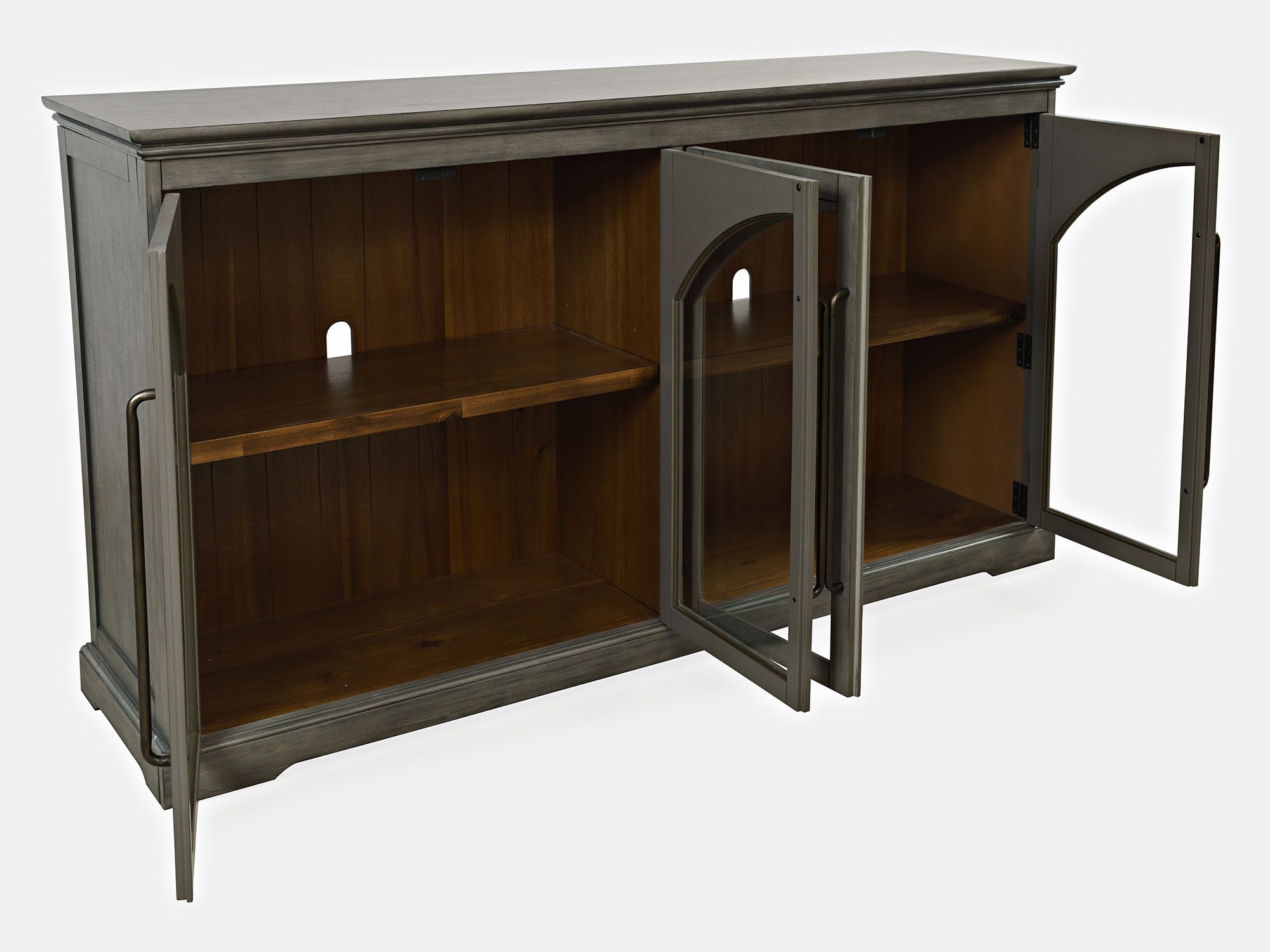 Komoda Szaro-Oliwkowa z Czwórką Przeszklonych Drzwi i Ozdobnymi Łukami – Avola