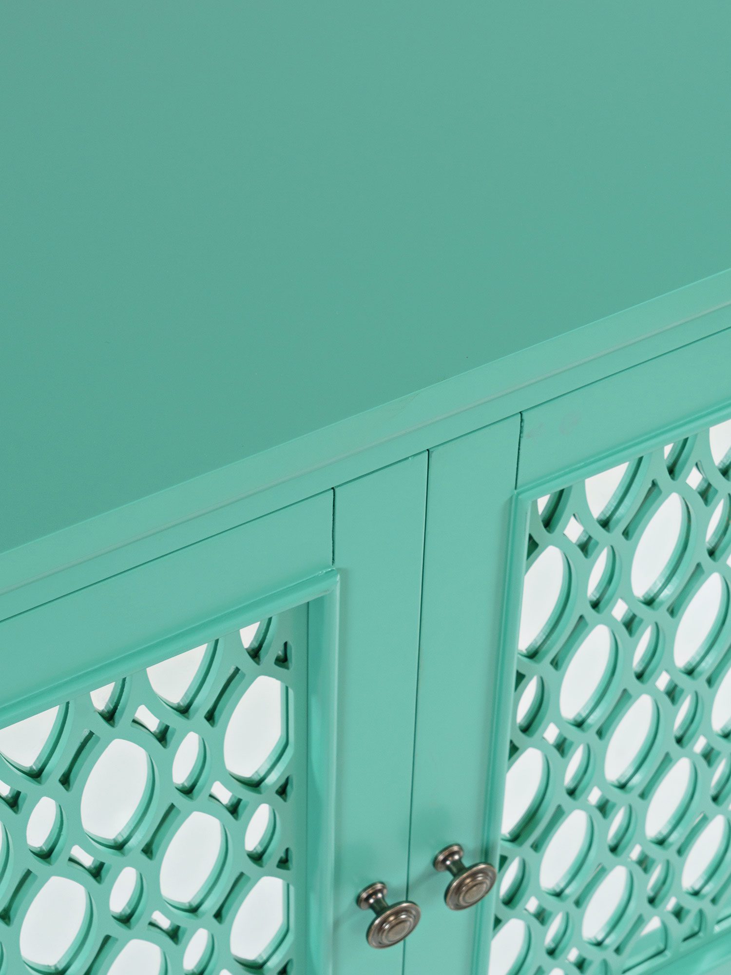 Komoda w Kolorze Turkusowo-Zielonym z Lustrzanymi Drzwiami i Szprosami – Avola