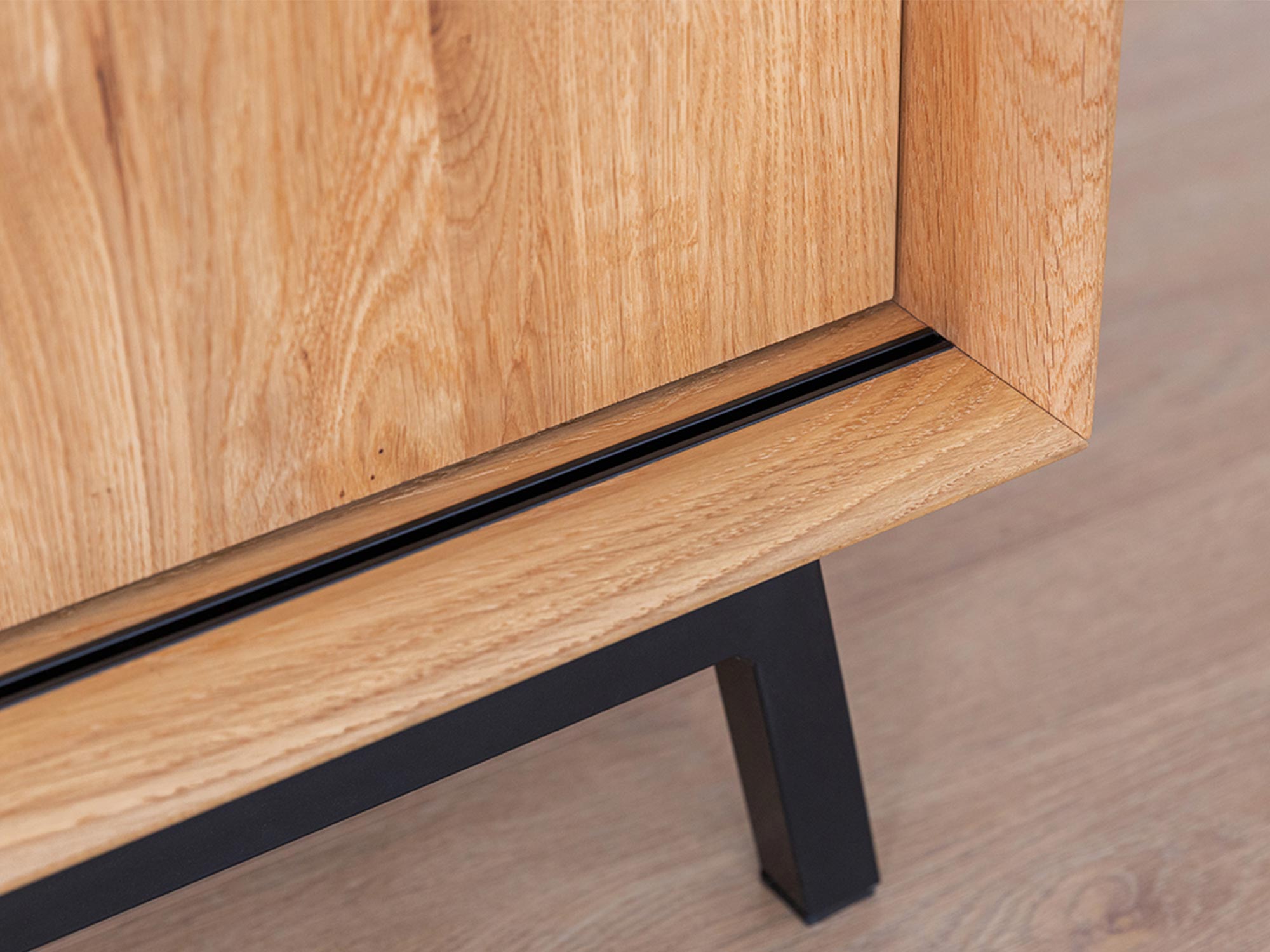 - Elegancki i Nowoczesny Design: Połączenie drewna dębowego z metalowymi elementami tworzy stylową, loftową kompozycję.