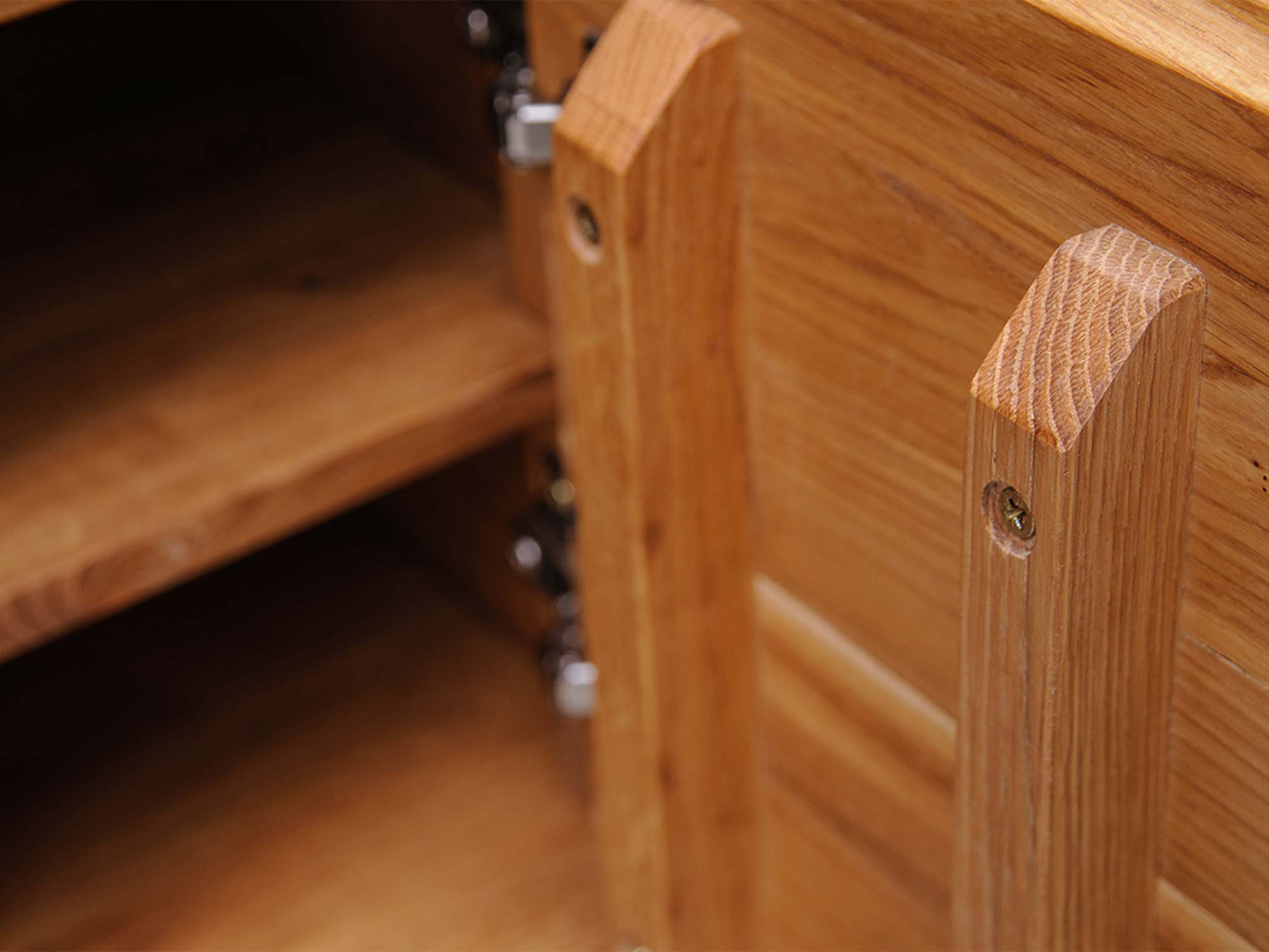 - Estetyczne wykonanie: Drewno dębowe nadaje meblowi eleganckiego wyglądu, a naturalne usłojenie i sęki czynią każdy egzemplarz wyjątkowym.