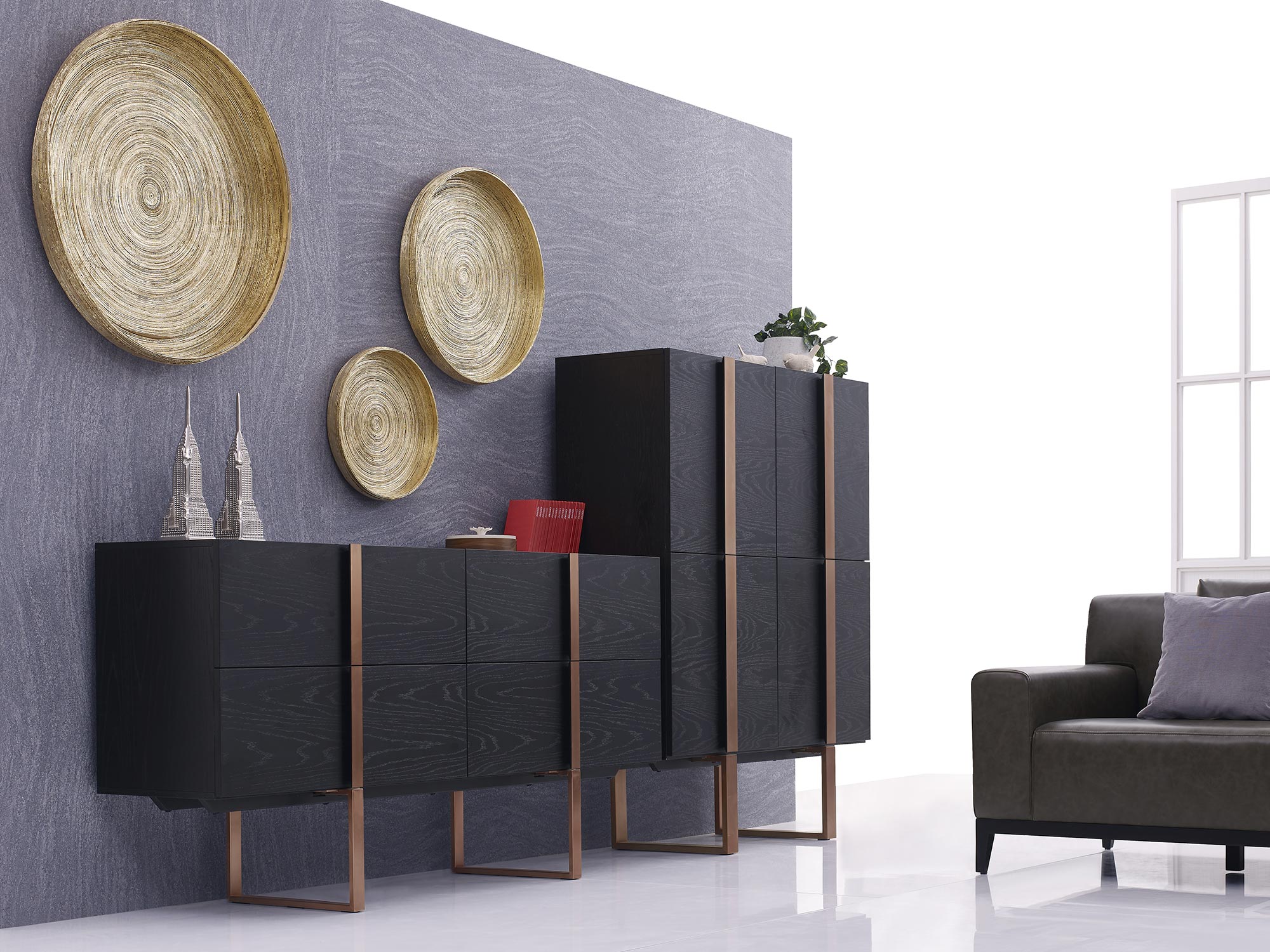 Komoda z czarnego dębu z różowozłotymi nogami i systemem soft-close – Brooklyn
