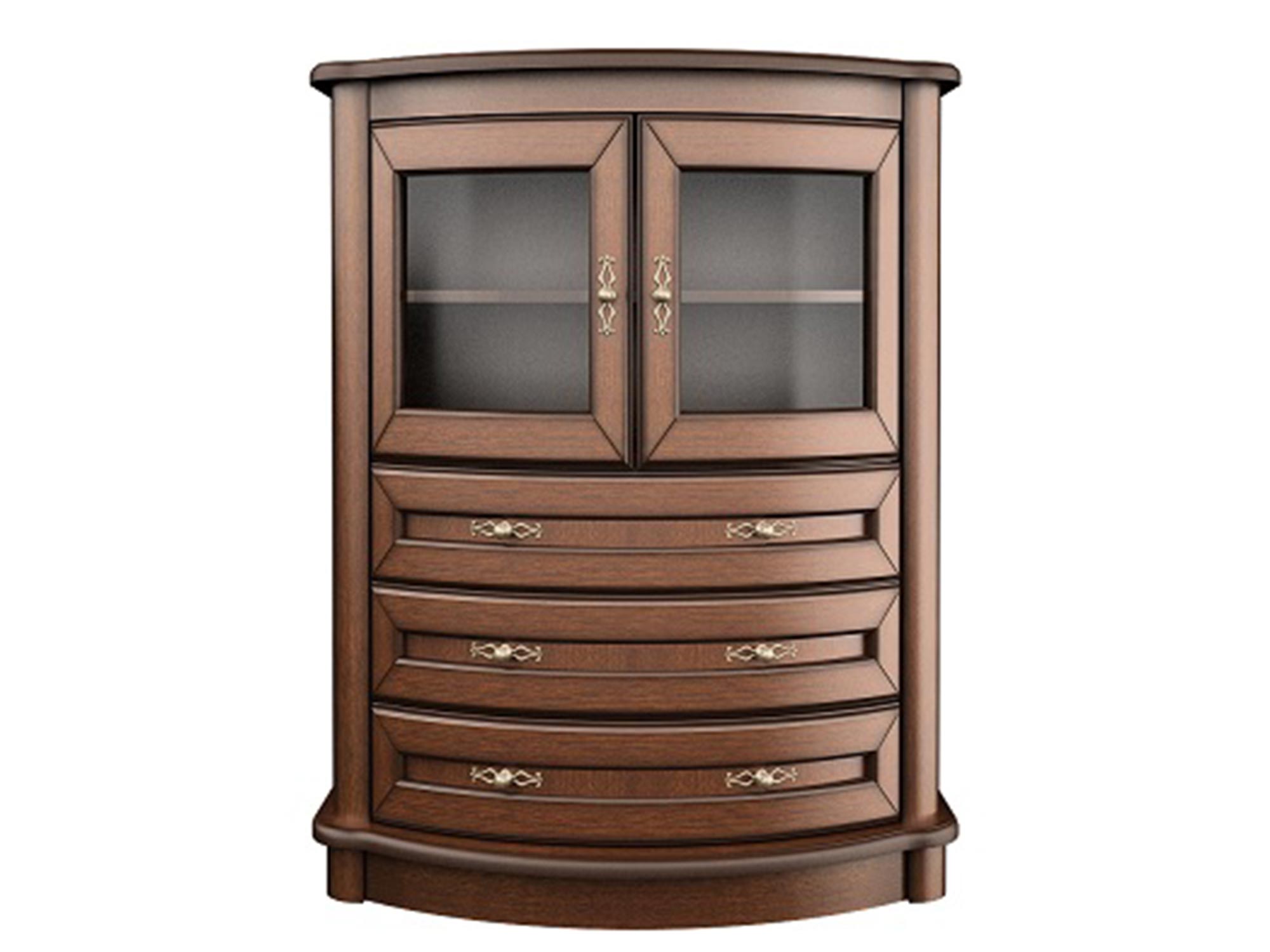 Klasyczna witryna narożna z przeszklonymi drzwiami, rzeźbionymi detalami i dekoracyjnymi uchwytami do eleganckiego wnętrza