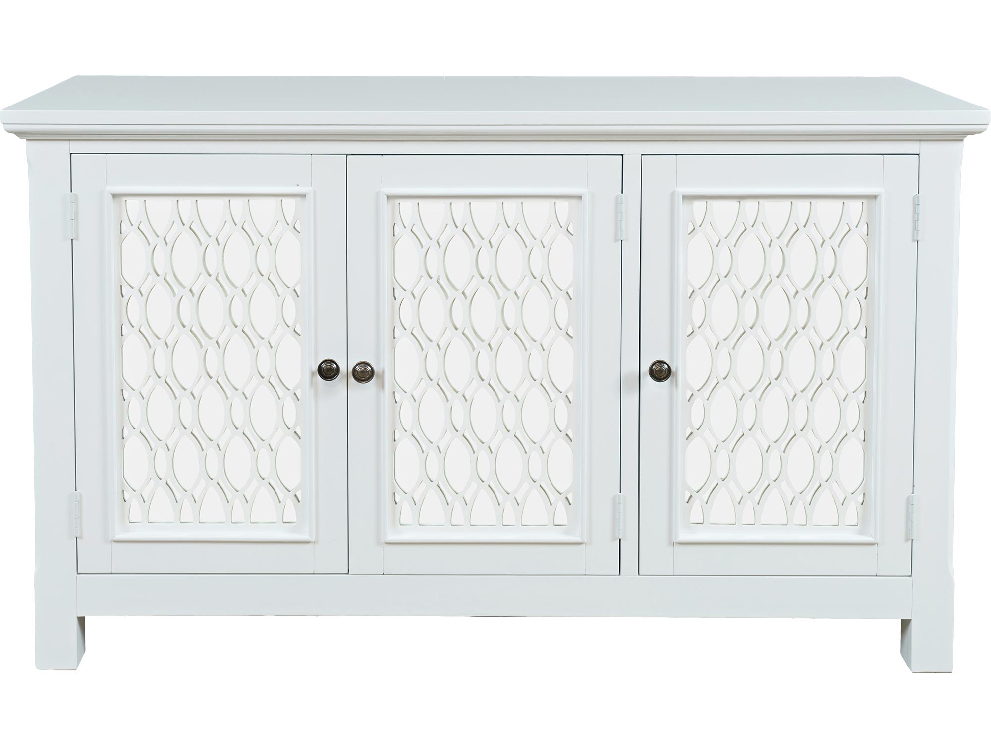 Lustrzana Biała Komoda z Dekoracyjnymi Szprosami – Avola