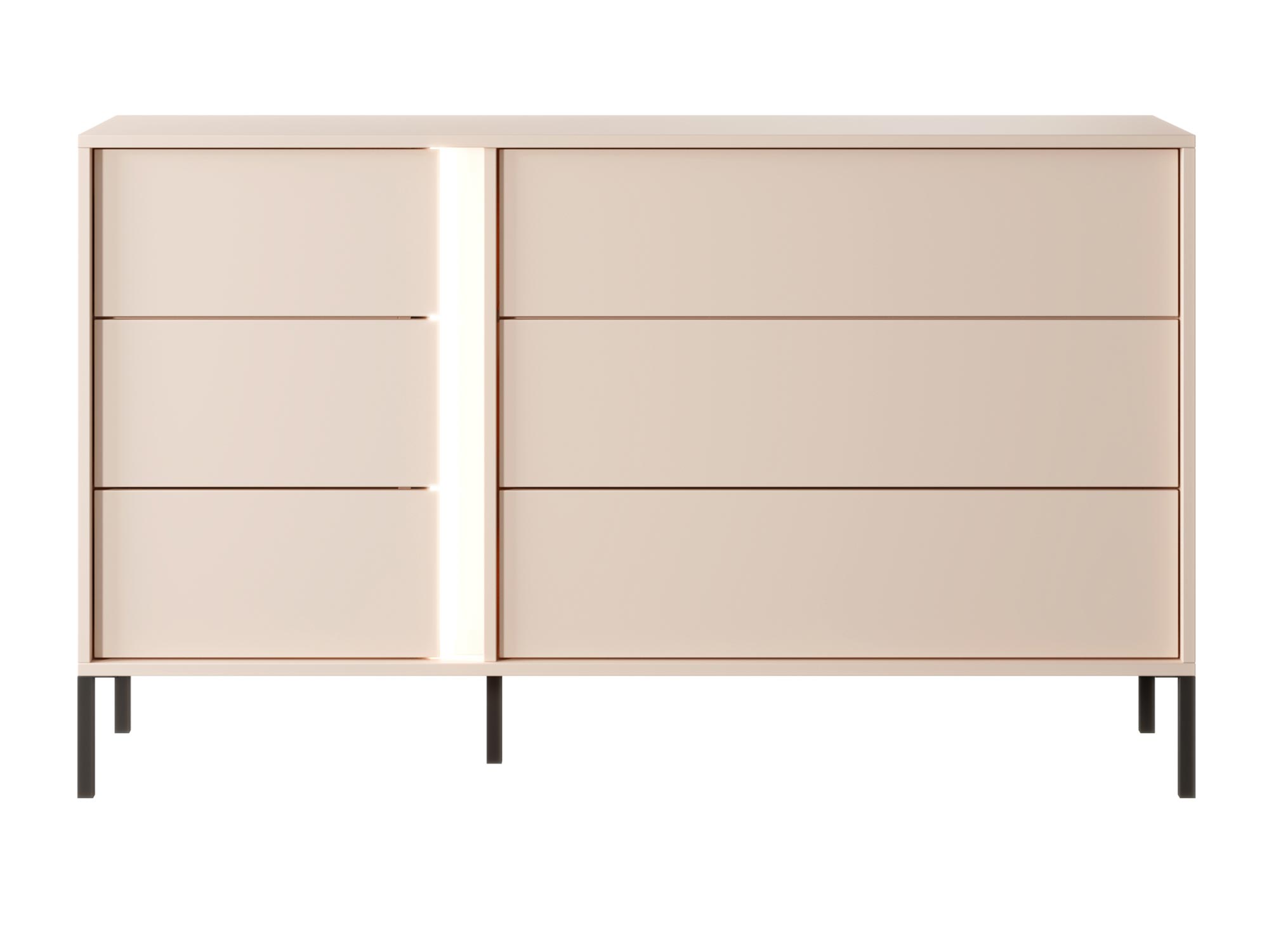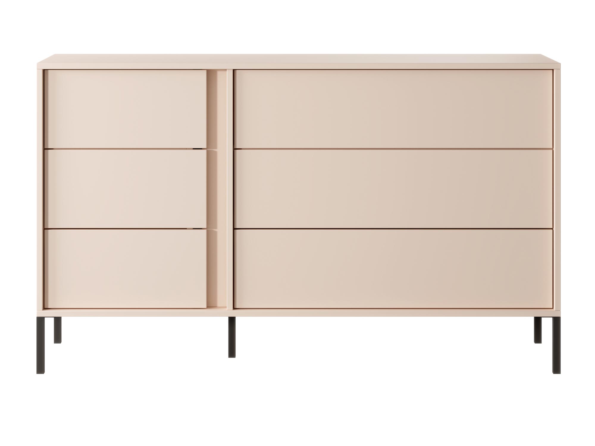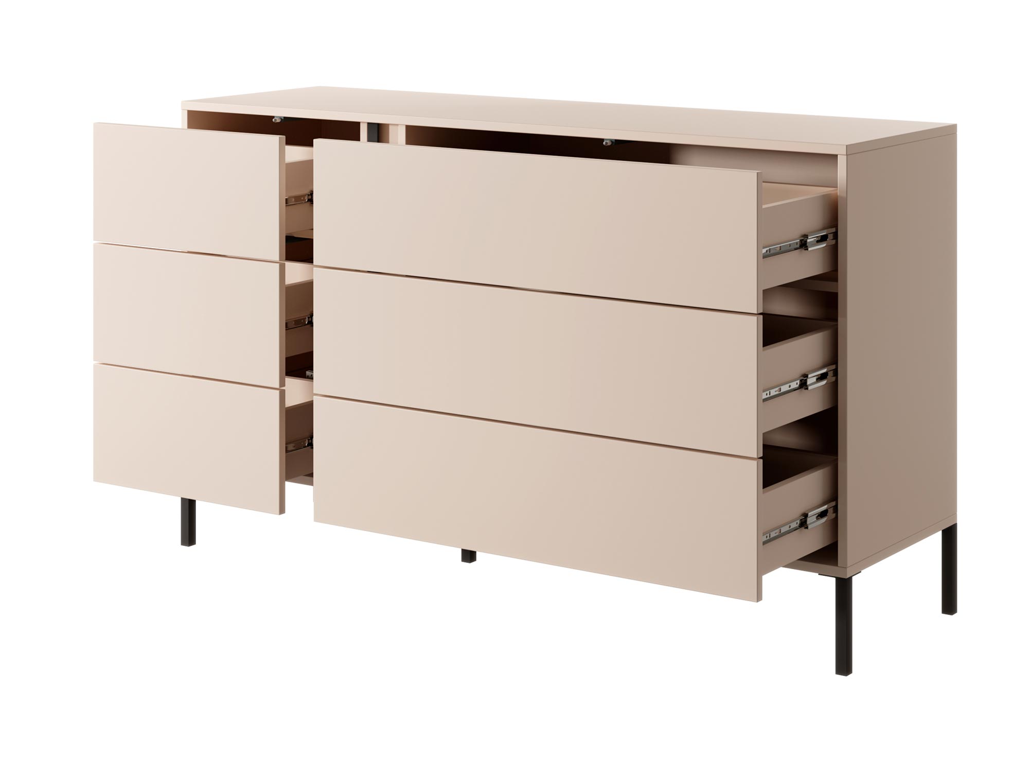 - Minimalistyczny Wygląd: Proste linie i brak uchwytów podkreślają nowoczesny charakter komody, zapewniając jednocześnie łatwość użytkowania dzięki systemowi otwierania push-to-open.