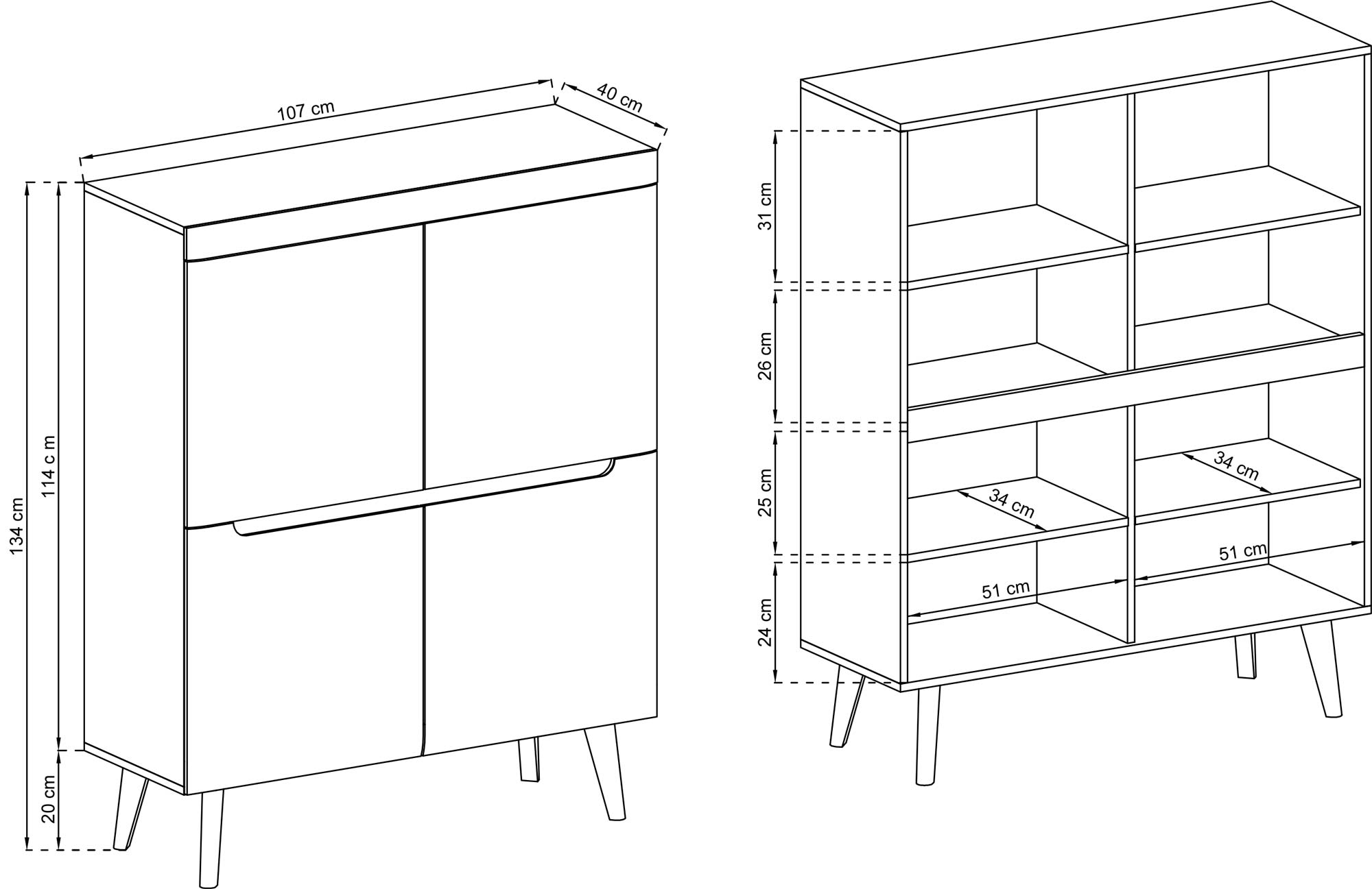 - Drewniane, wysokie nóżki.