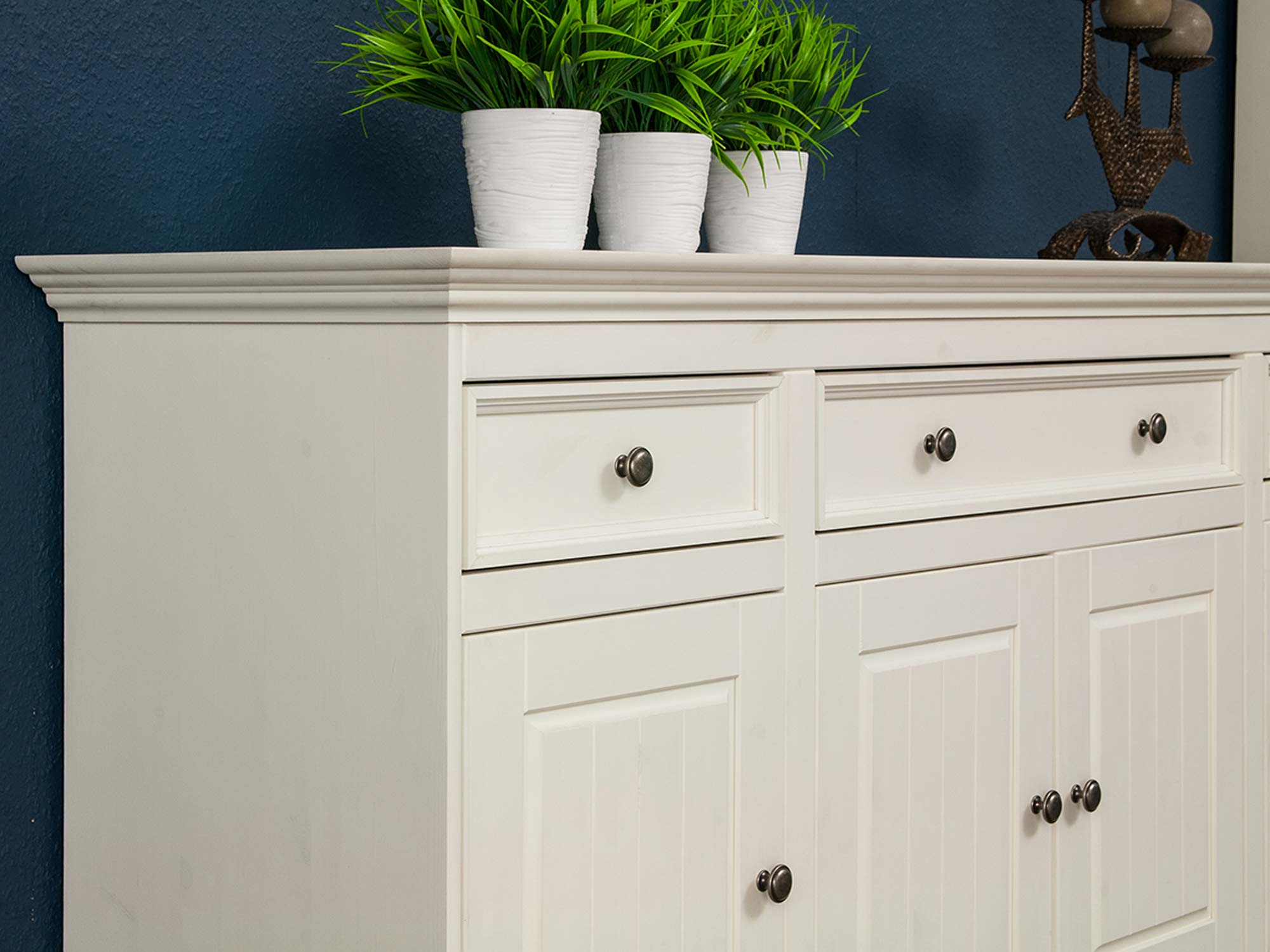 Przede wszystkim oferowana komoda z drewna litego INGRID to mebel solidny, trwały oraz funkcjonalny. Oczywiście nie można zapomnieć o jego wysokich walorach estetycznych. Bez wątpienia eleganckie frezy, ozdobny wieniec zaprojektowany na styl prowansalski oraz niekonwencjonalne uchwyty potrafią zachwycić niejeden wymagający gust. Na uwagę zasługuje również dbałość o każdy szlif i detal oraz materiał wykonania. Ze względu iż do produkcji mebla wykorzystano lite drewno sosny fińskiej, jest to mebel solidny oraz trwały, co oznacza iż posłuży wiele lat.