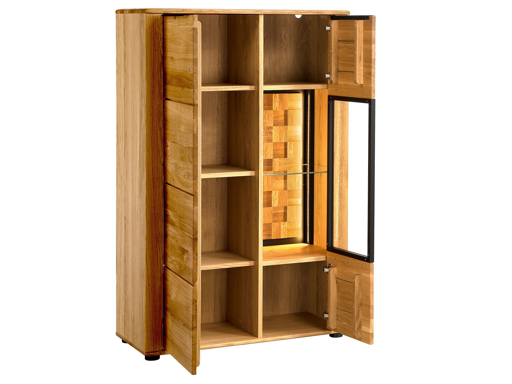 Zbliżenie na elementy dekoracyjne witryny z dębu litego
