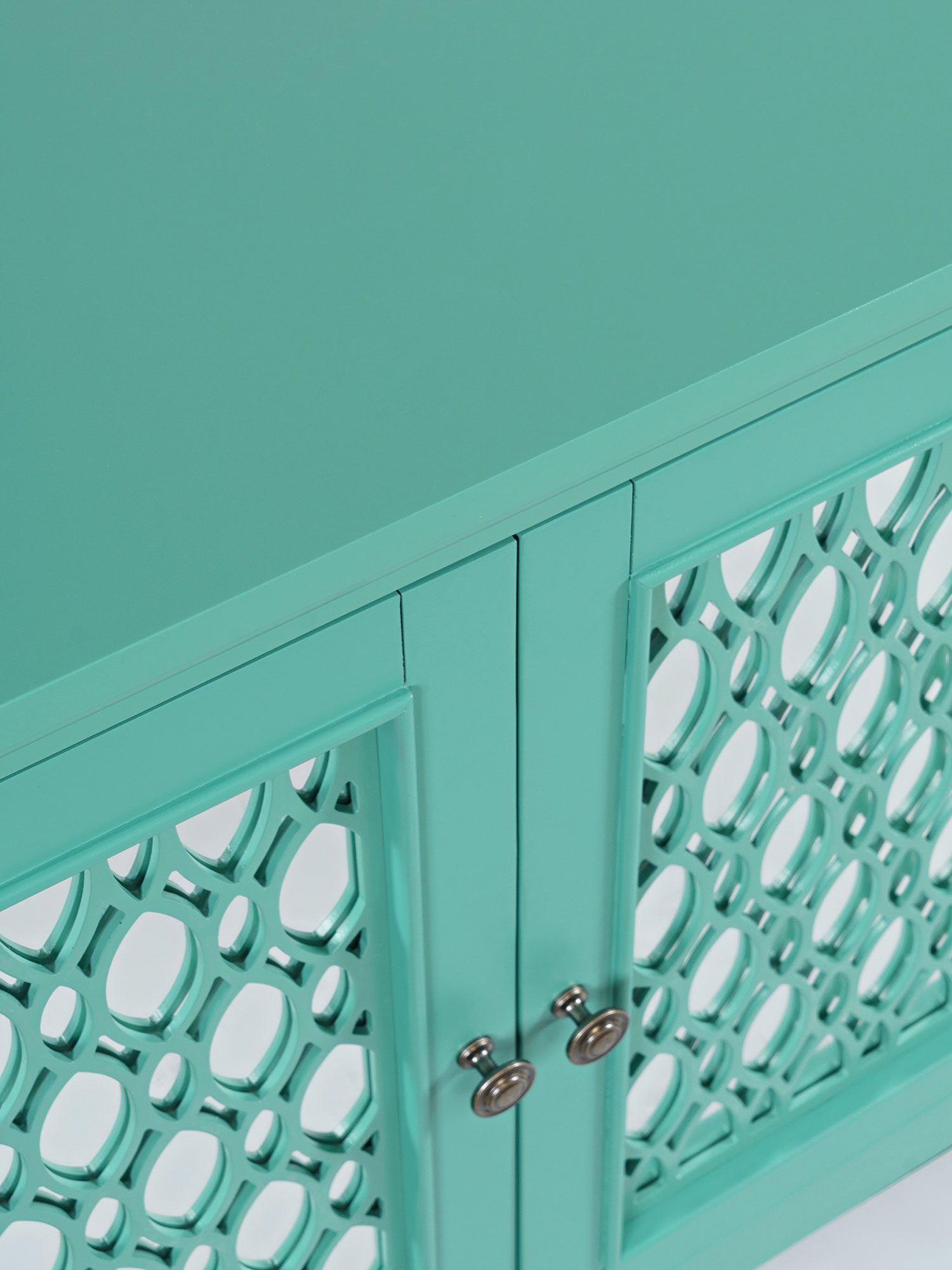 Turkusowo-Zielona Komoda z Lustrzanymi Drzwiami i Szprosami – Avola