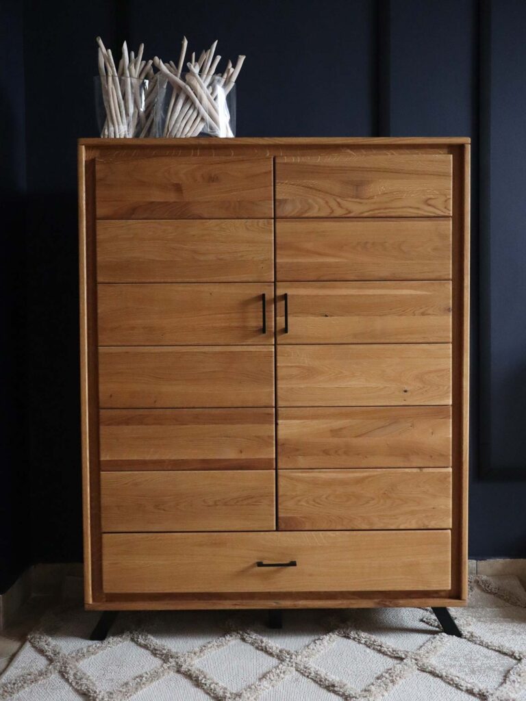 Wysoka Dębowa Komoda na Nóżkach ALAMOS LOFT