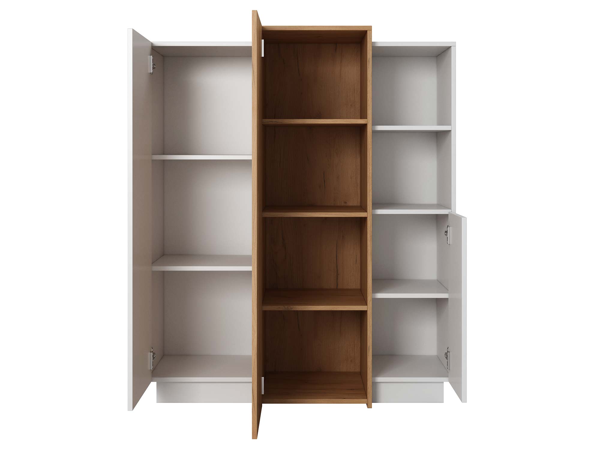 Nowoczesna wysoka komoda MAILS to nowy system mebli, który nada Twojemu pomieszczeniu niepowtarzalny i unikatowy charakter. Z pewnością biel przeplatająca się z kolorystyką dębu craft złotego pozwoli na ożywienie oraz kontrast w Twoim wnętrzu. System MAILS to nowa linia mebli powstała z myślą o nowoczesnych wnętrzach. Dzięki meblom z serii MAILS stworzysz ciekawą aranżację swojego pomieszczenia. Meble wykonane z płyty laminowanej o grubości 16 mm o odporności na zarysowania oraz wilgoć. Zawiasy w szafkach z prowadnicami systemu z cichym domkiem.