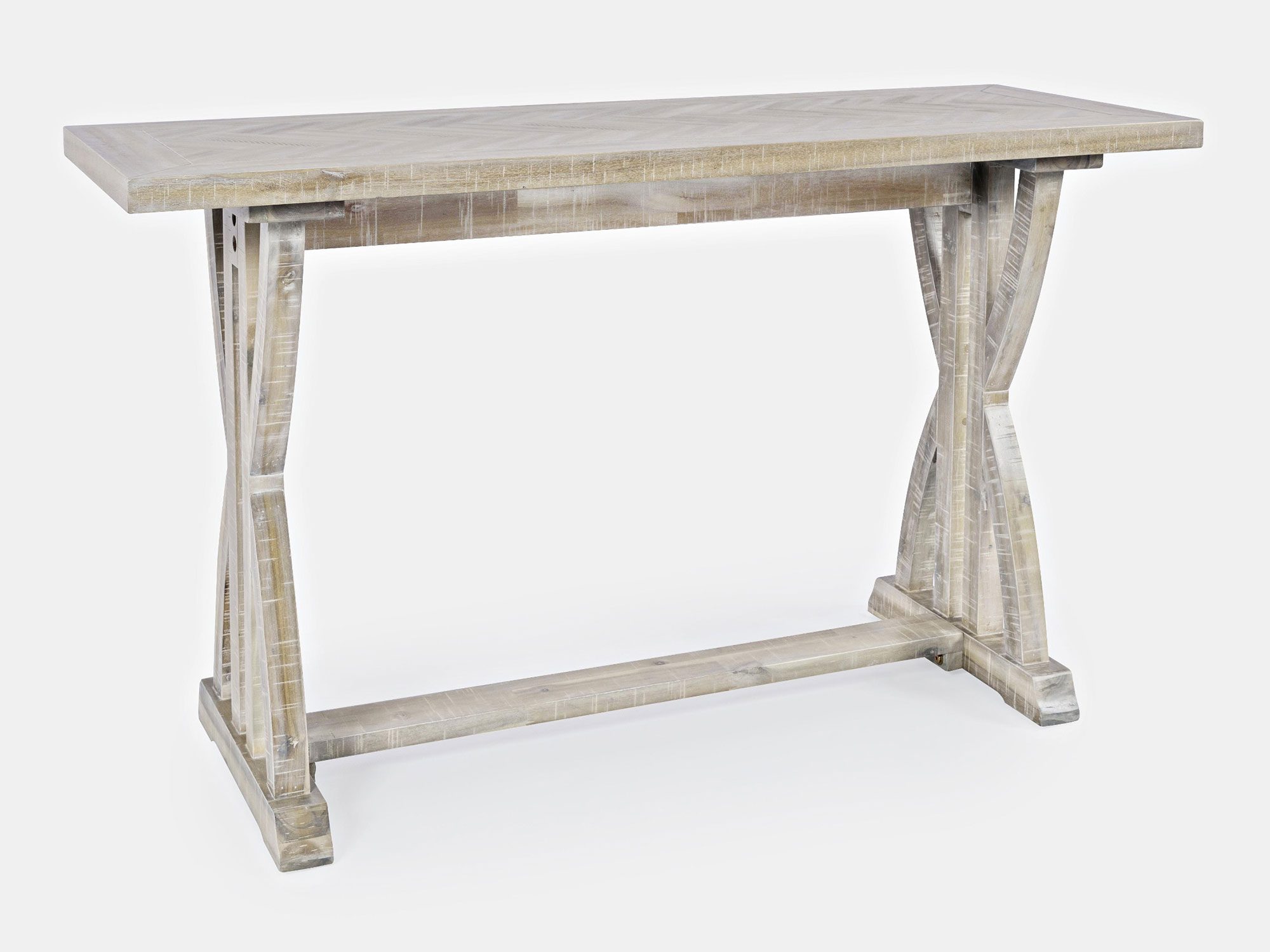 Stół konsolowy z dekoracyjnym wzorem w jodełkę na blacie