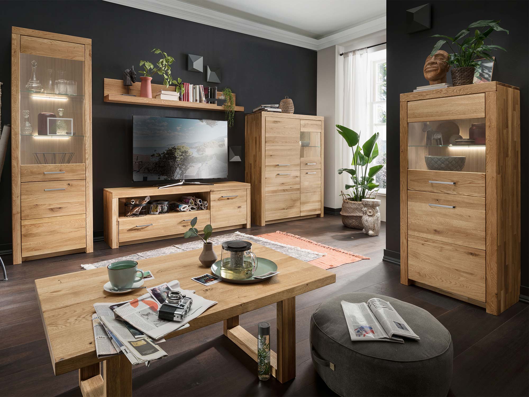• Mebel z litego drewna dębowego: Wykorzystanie litego drewna dębowego gwarantuje nie tylko trwałość i solidność, ale również unikalny, naturalny wygląd.