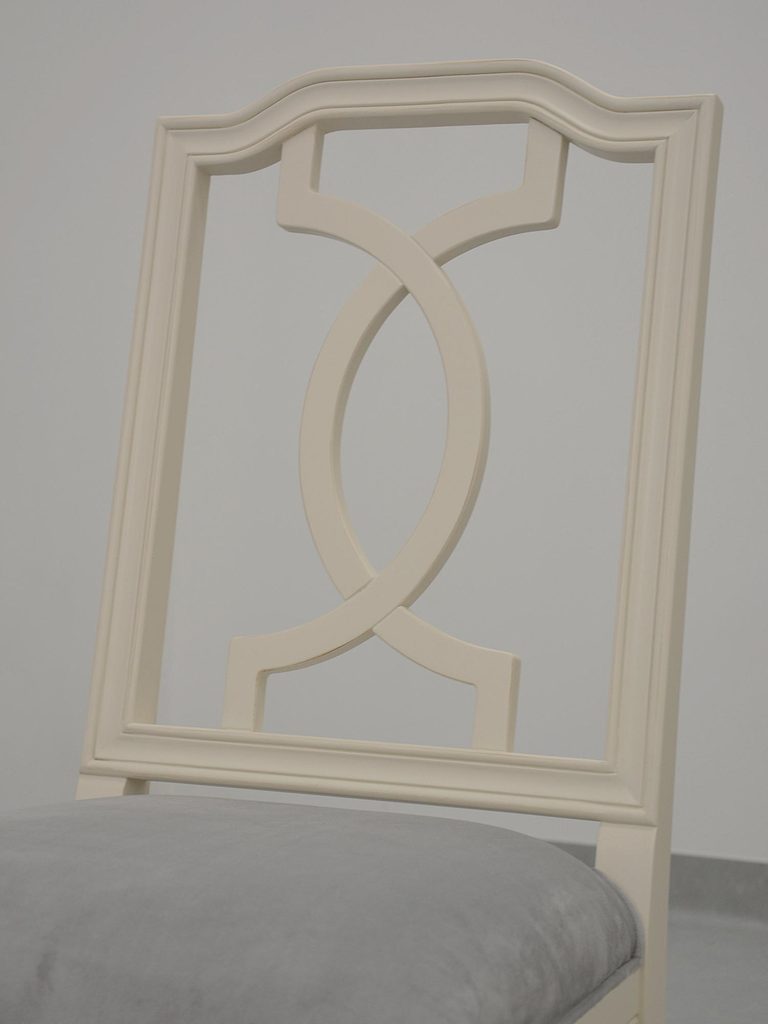 Krzesło tapicerowane na toczonych nóżkach w bieli antycznej – Dijon