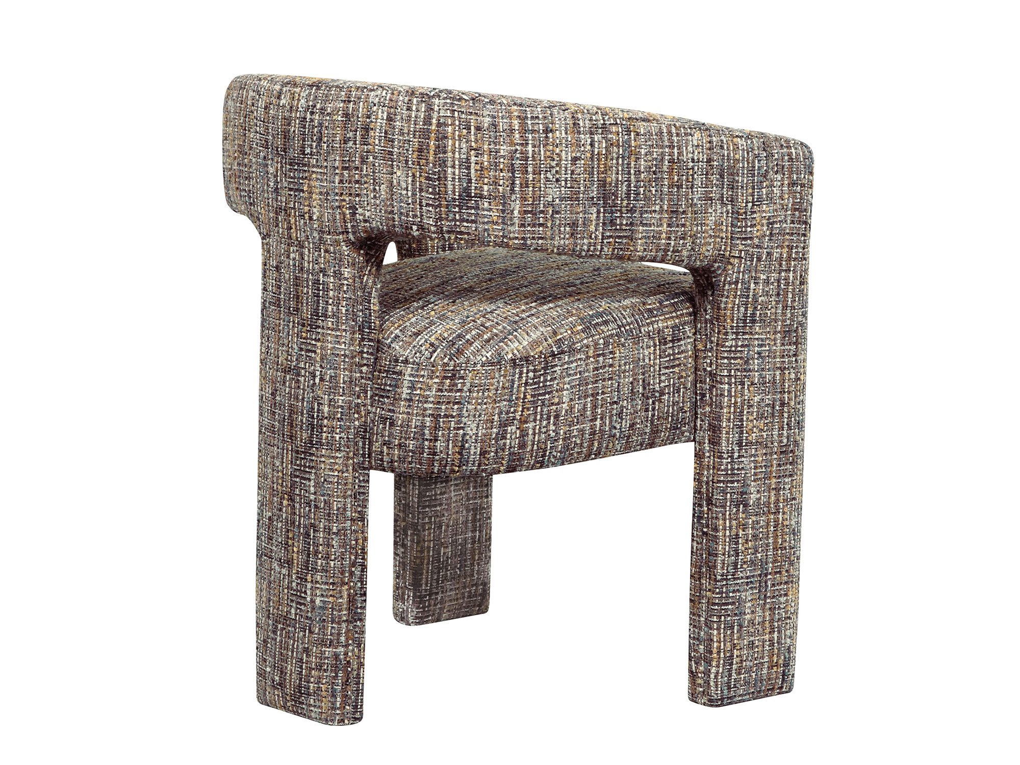 Eleganckie krzesło tapicerowane w wielokolorowym melanżu, które wnosi wyjątkowy styl i komfort do każdego wnętrza. Luksusowa tkanina szenilowa oraz modny design z obłymi kształtami sprawiają, że jest to idealny mebel do jadalni, salonu czy przestrzeni biurowej.