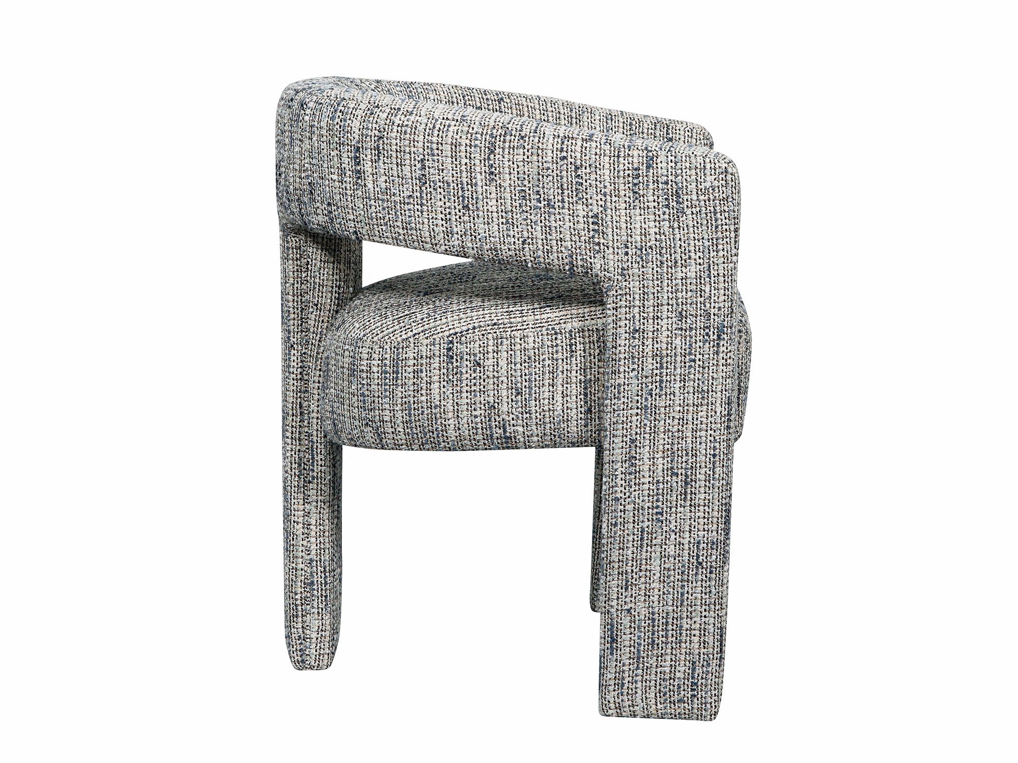 To krzesło wyróżnia się starannym wykonaniem i unikalnym wzornictwem. Wykorzystano melanż kolorów – bieli, czerni, niebieskiego, szarego i beżowego – co czyni go wszechstronnym meblem pasującym do różnych aranżacji. Luksusowa tapicerka szenilowa zapewnia przyjemność w użytkowaniu i wysoką trwałość. Sprężyny faliste oraz siatka w połączeniu z pianką o dużej gęstości gwarantują niezwykły komfort siedzenia, a solidna konstrukcja ze sklejki drewna topoli zapewnia stabilność i długowieczność mebla. Dzięki swoim obłym kształtom, krzesło to doskonale wkomponuje się w nowoczesne i klasyczne wnętrza.